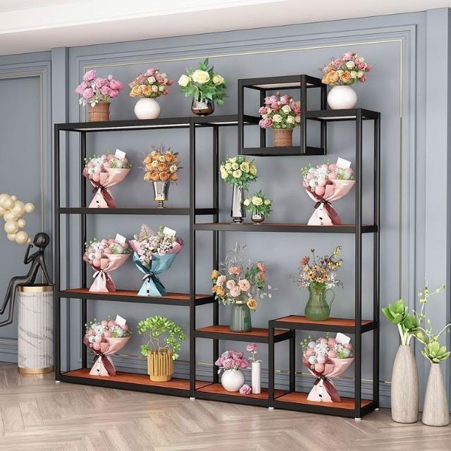 未晚家居館 花店鮮花展示架花束架子花盆禮盒花籃工藝品陳列架多層花店展示架花架
