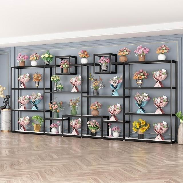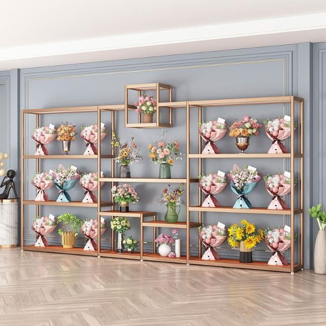 未晚家居館 花店鮮花展示架花束架子花盆禮盒花籃工藝品陳列架多層花店展示架花架