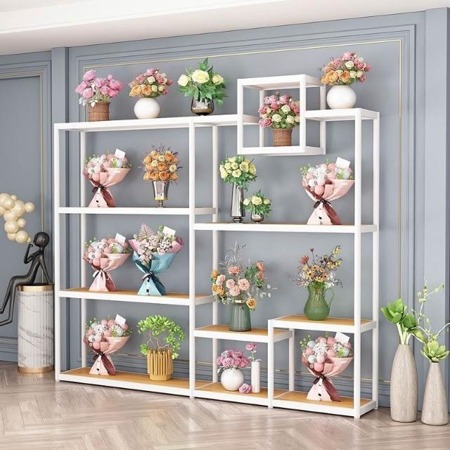 未晚家居館 花店鮮花展示架花束架子花盆禮盒花籃工藝品陳列架多層花店展示架花架