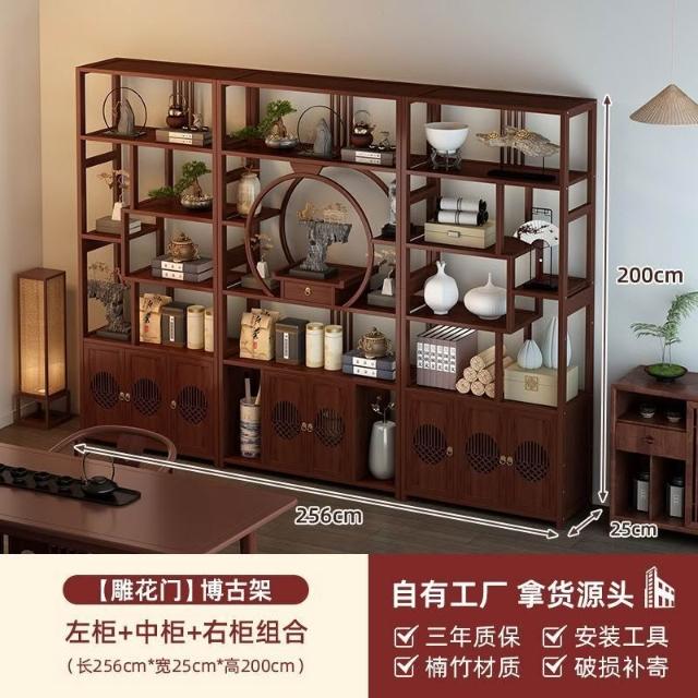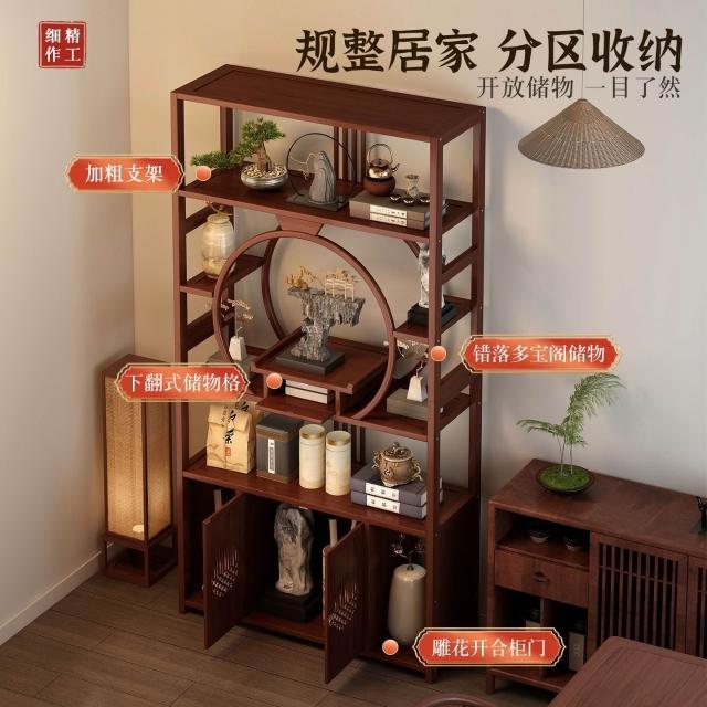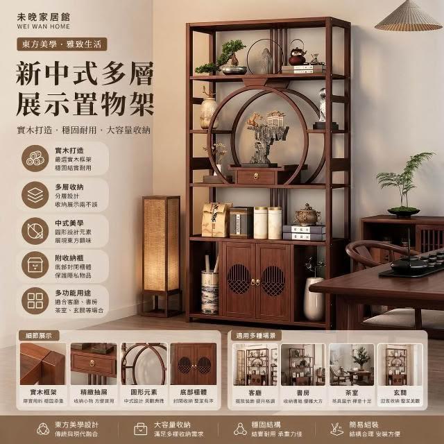 未晚家居館 新中式置物架中國風博古架茶櫃茶室茶葉茶具展示架花架子室內家用