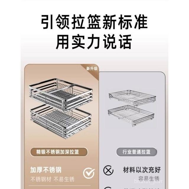 未晚家居館 碗盤拉籃廚房櫥櫃304不銹鋼瀝水架雙層抽屜式碗櫃碗碟收納碟架碗籃加厚