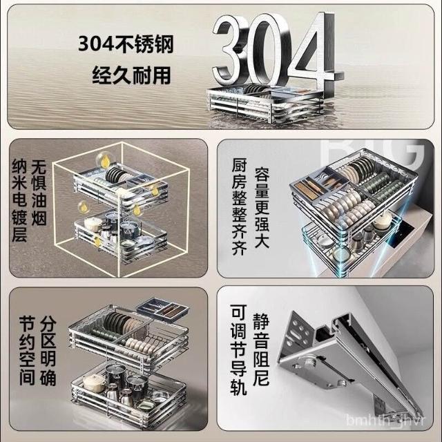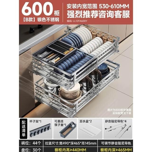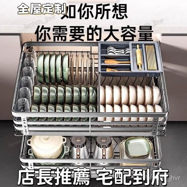 未晚家居館 碗盤拉籃廚房櫥櫃304不銹鋼瀝水架雙層抽屜式碗櫃碗碟收納碟架碗籃加厚