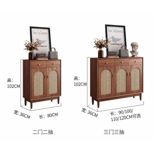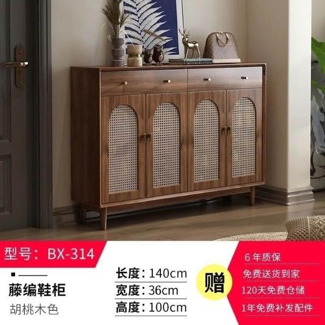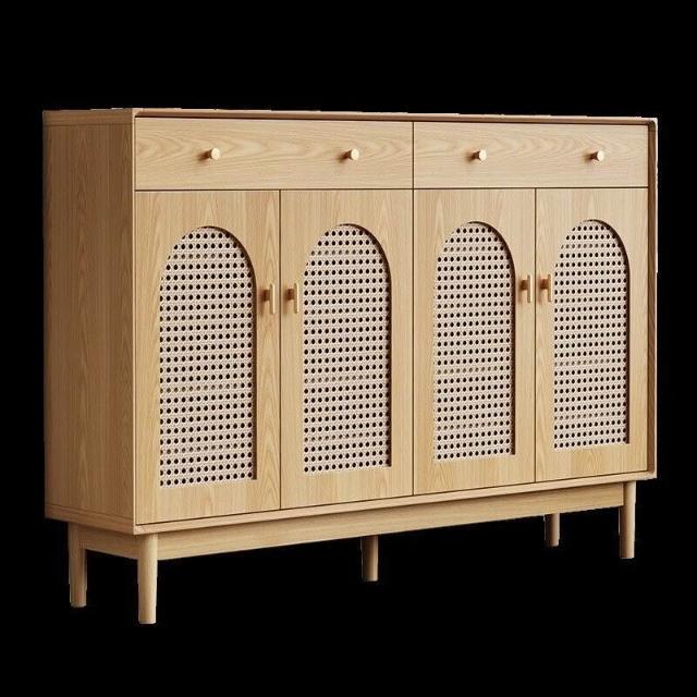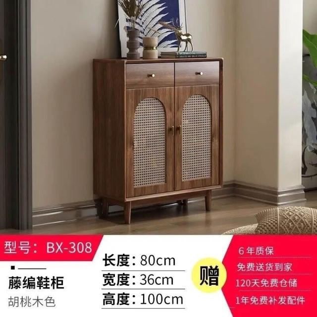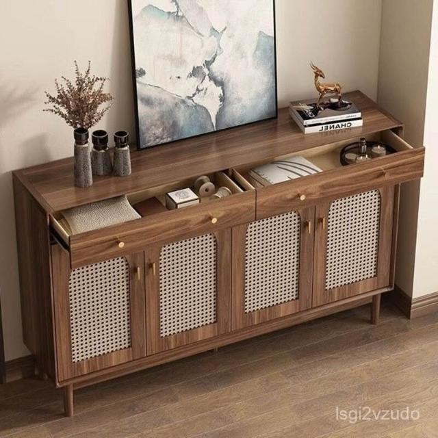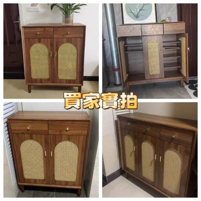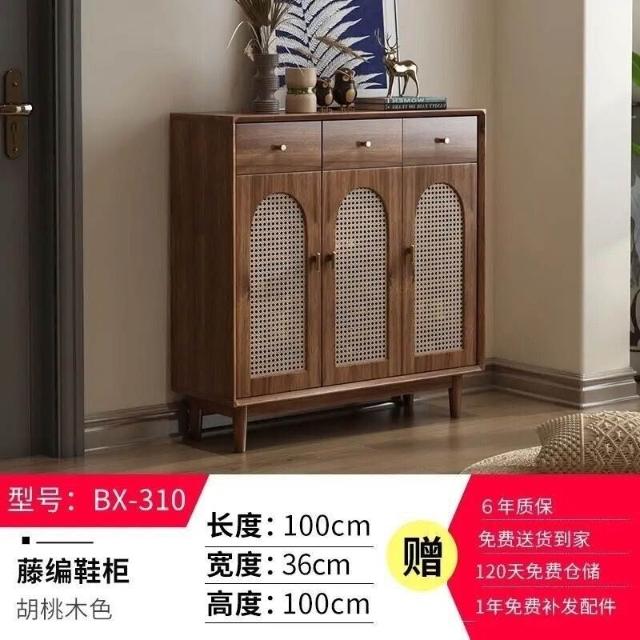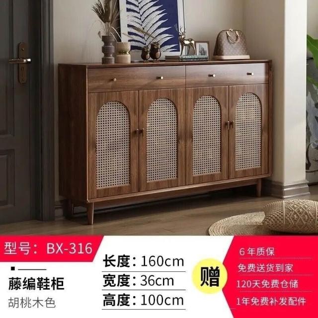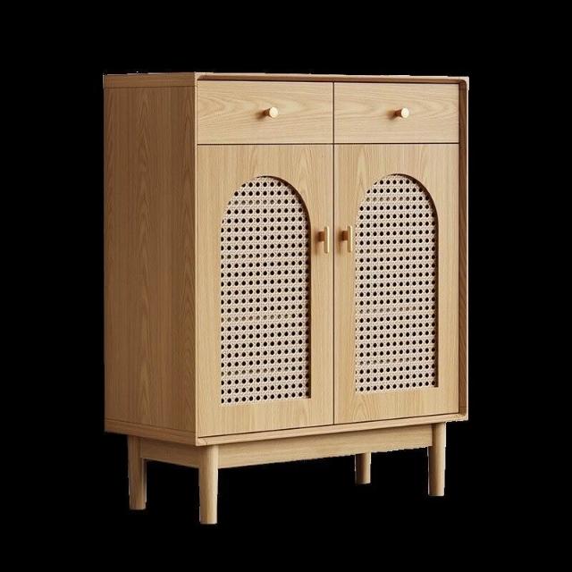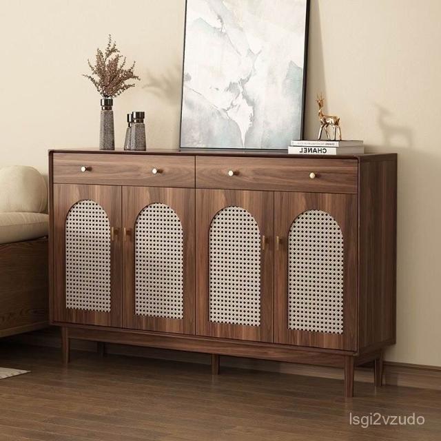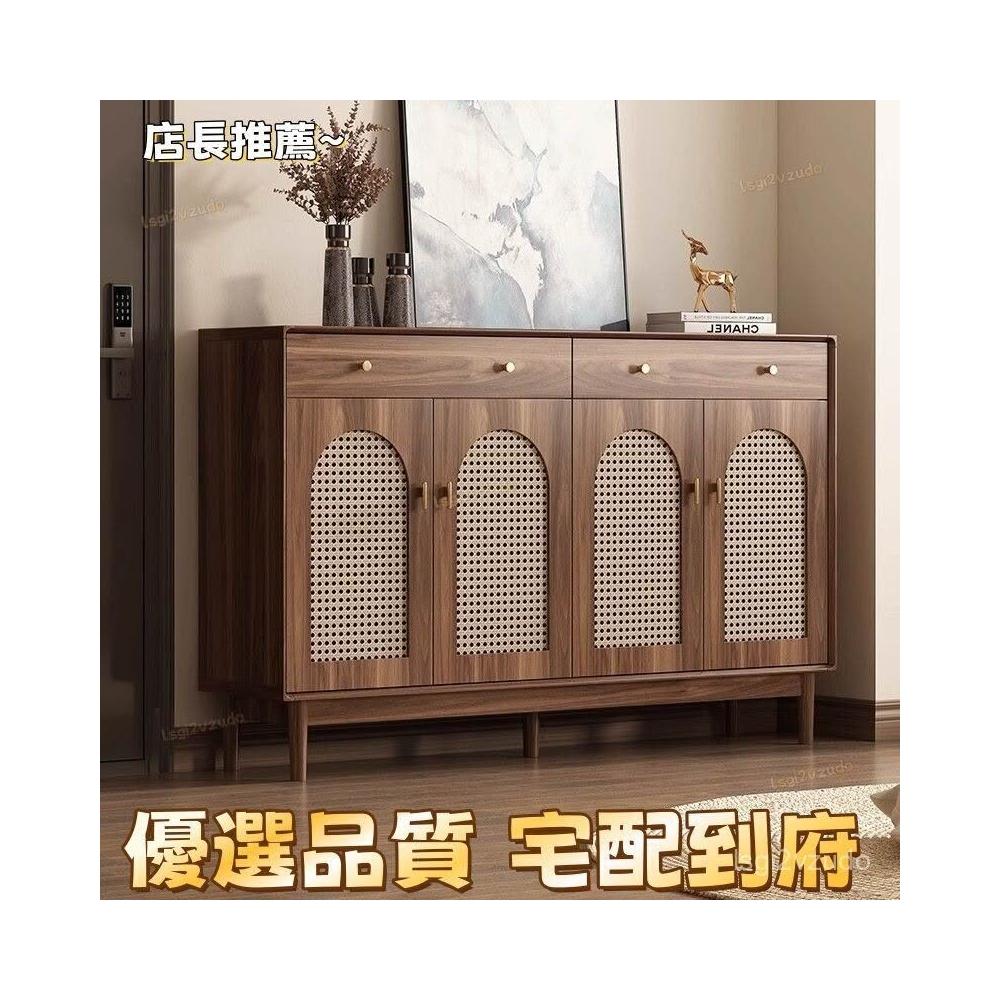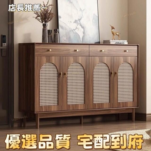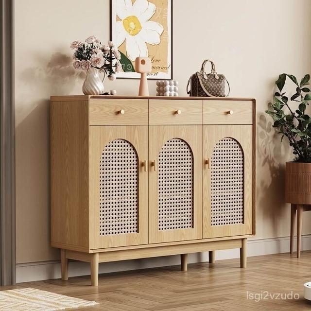 未晚家具舘 中古風藤編鞋櫃實木家用門口玄關簡約客廳入戶透氣收納儲物櫃新款一體靠墻中古風收納櫃全實木陽臺儲物櫃