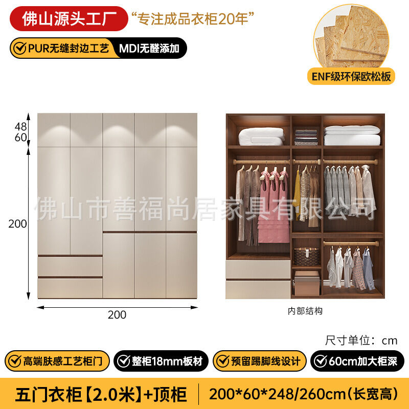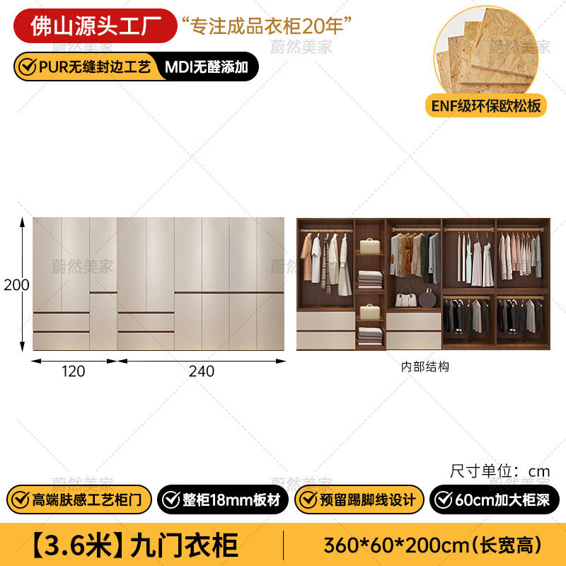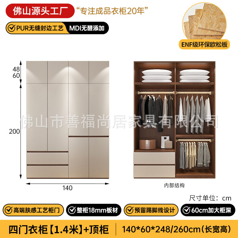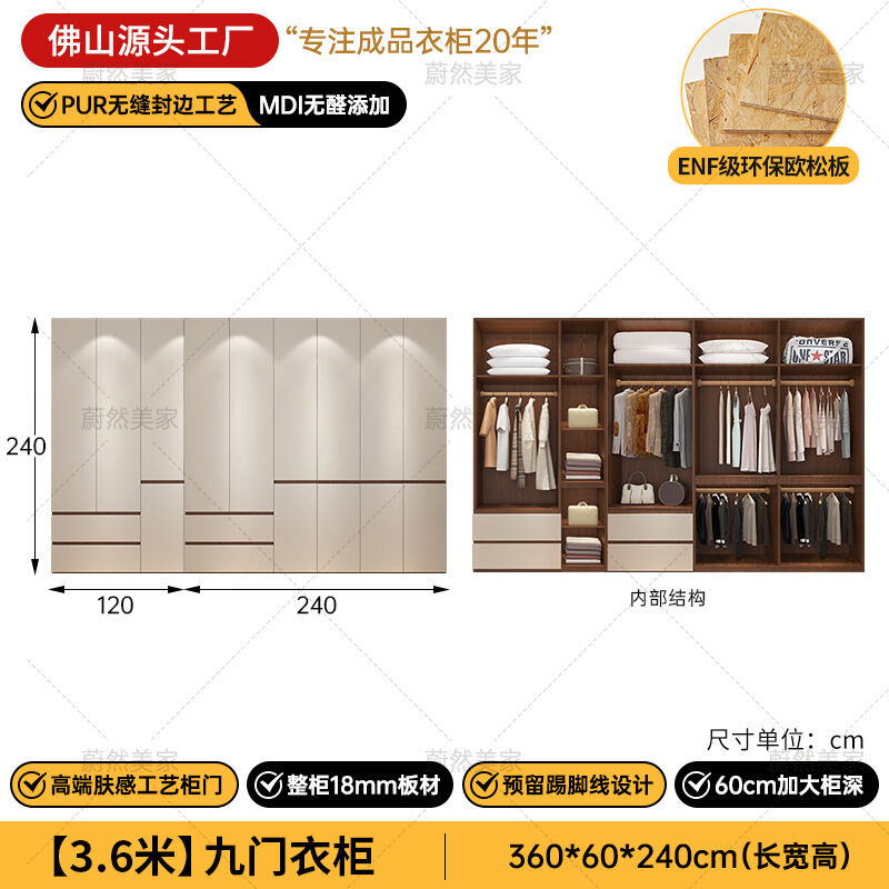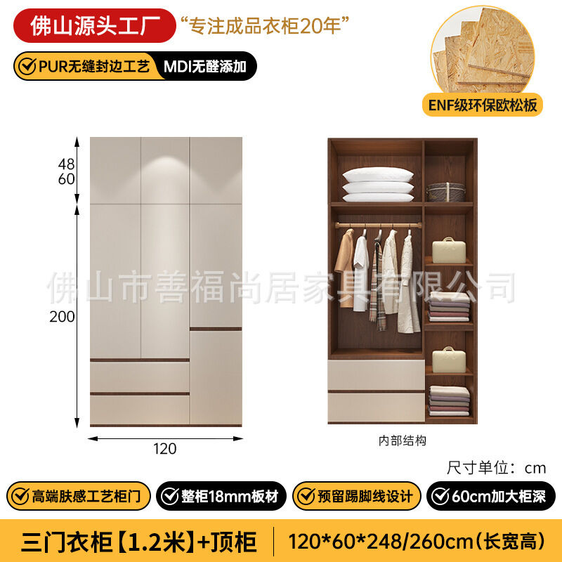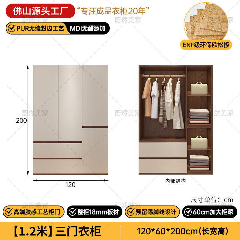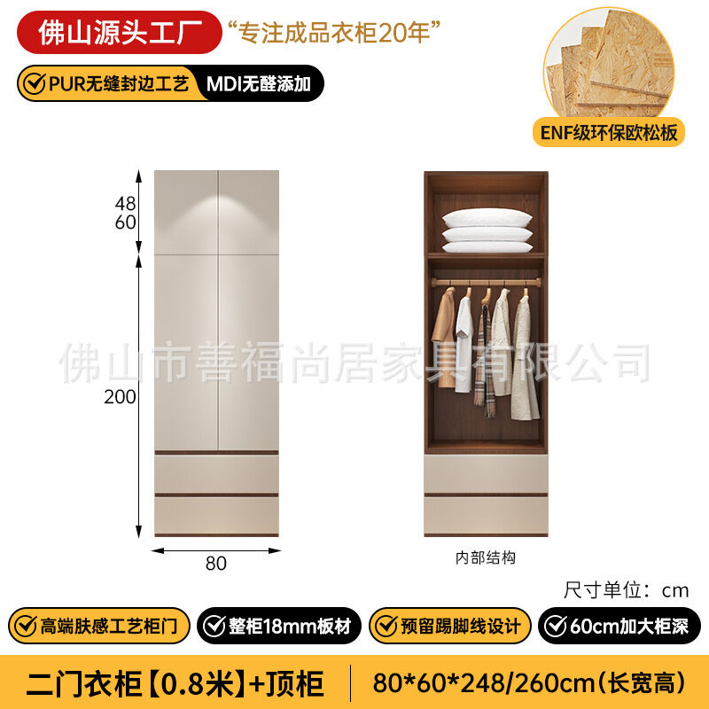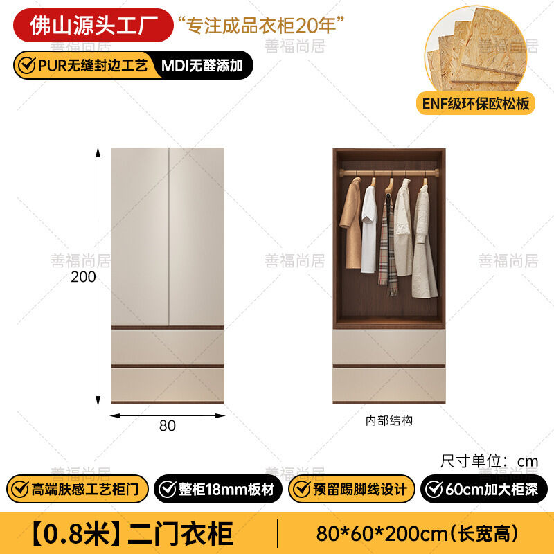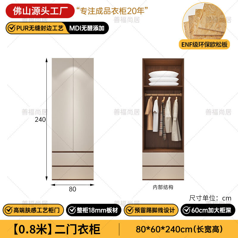 未晚家具舘 ENF級歐松板衣櫃家用臥室18mm加厚板櫃子分段式免拉手組合衣櫃