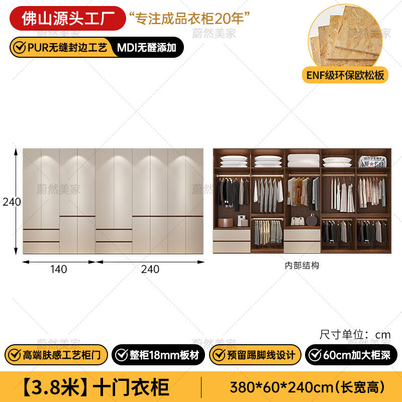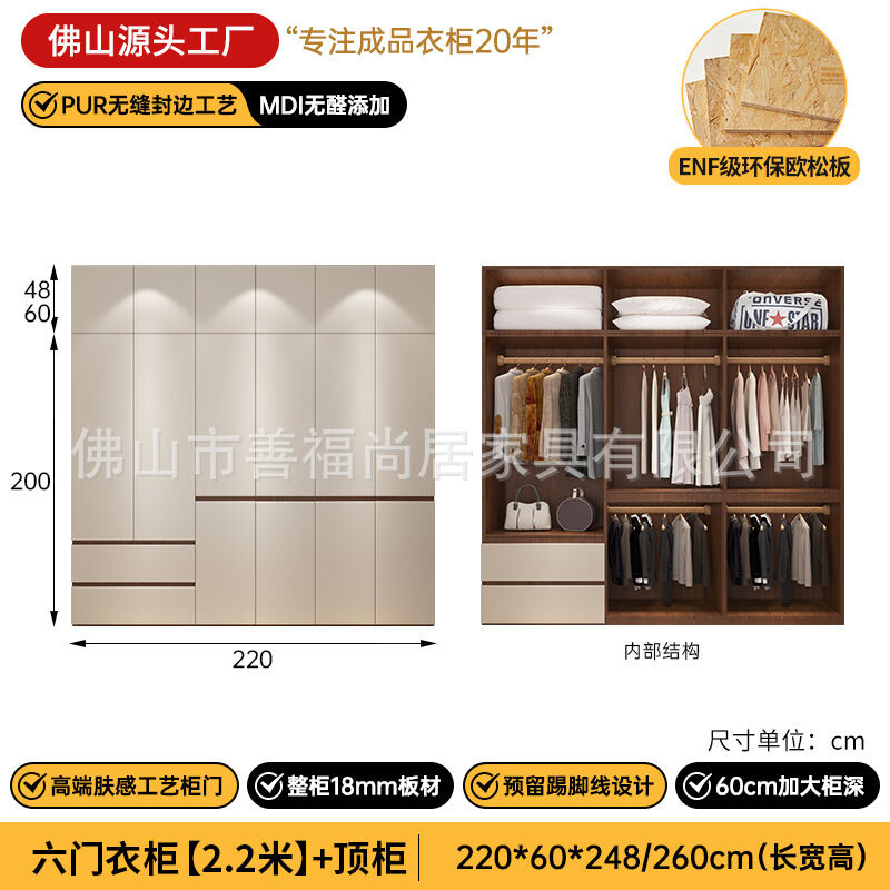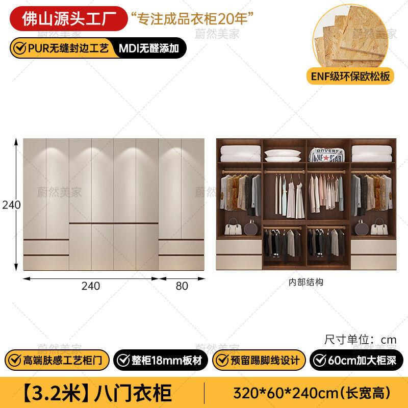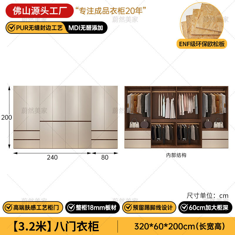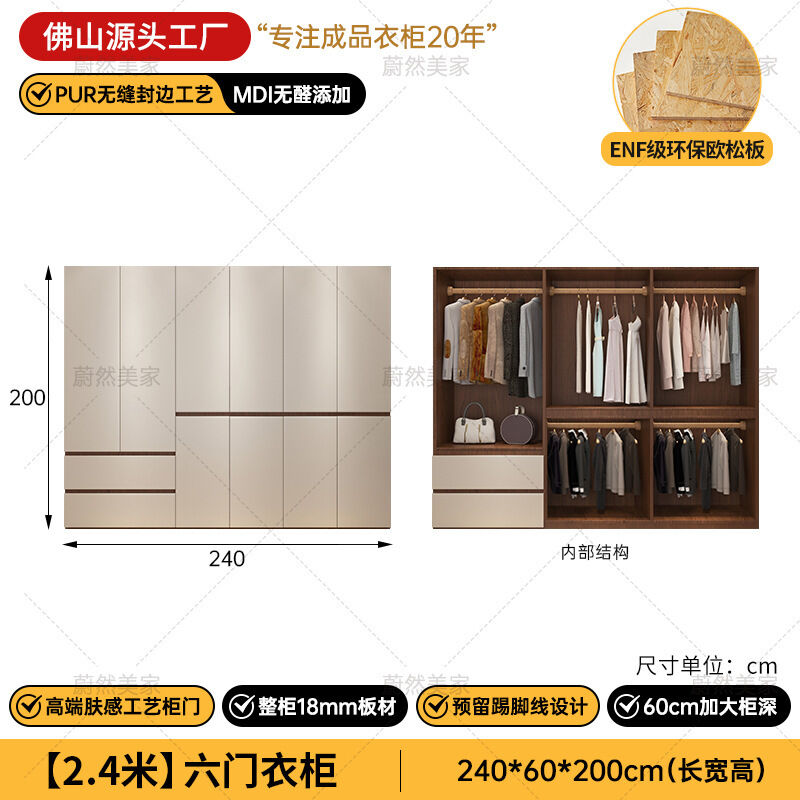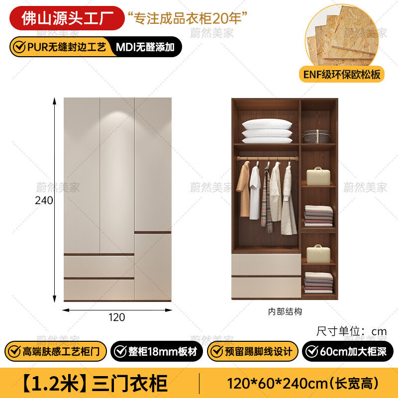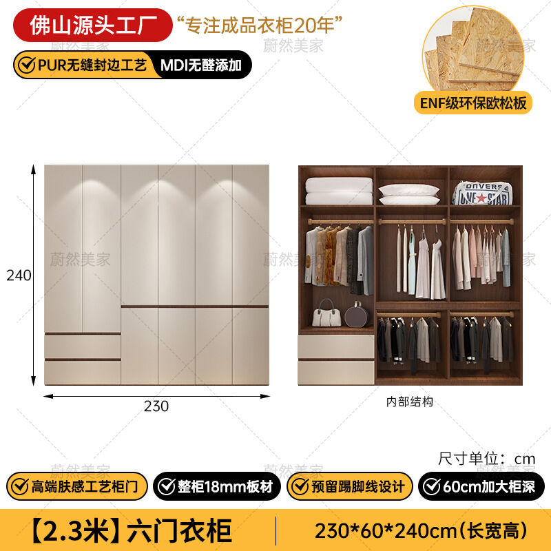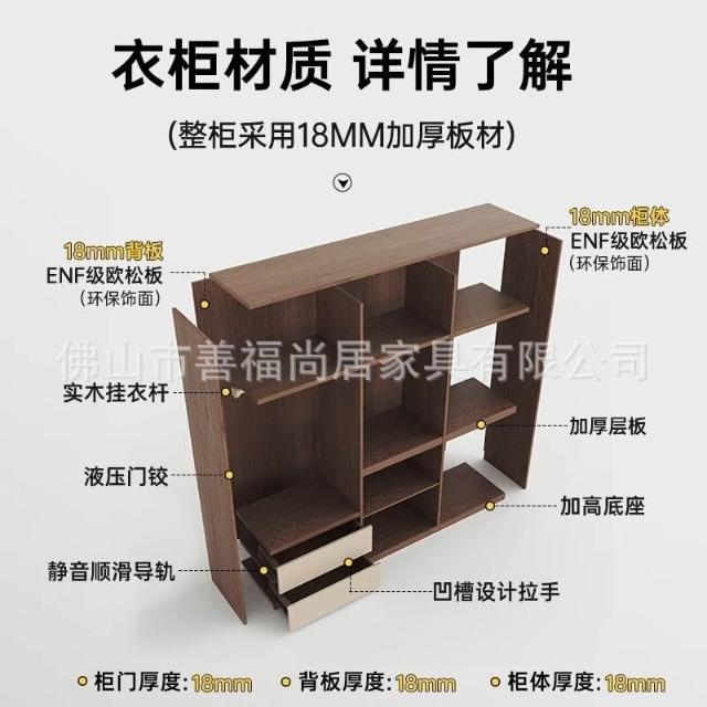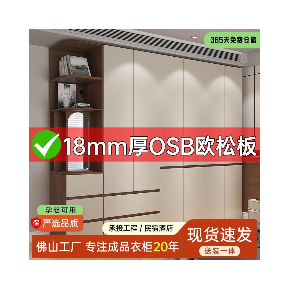 未晚家具舘 ENF級歐松板衣櫃家用臥室18mm加厚板櫃子分段式免拉手組合衣櫃