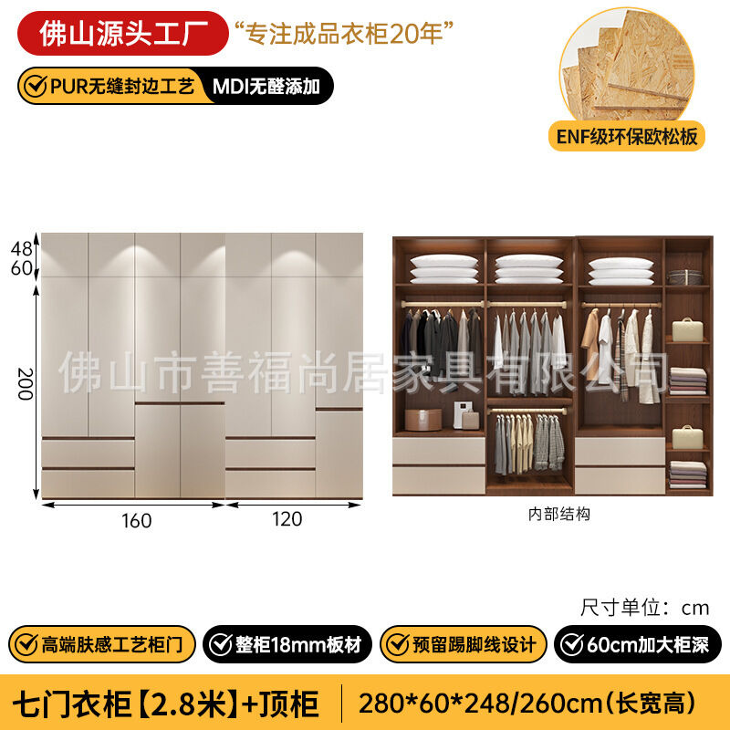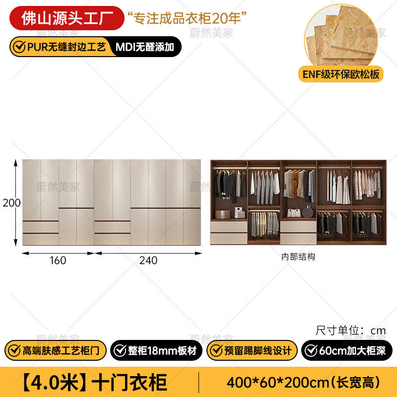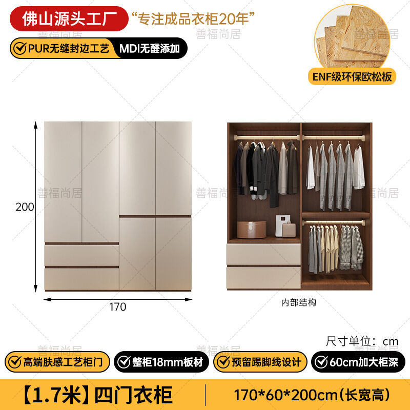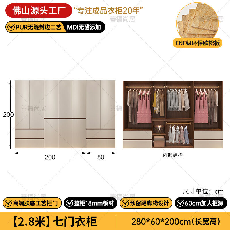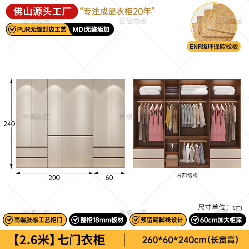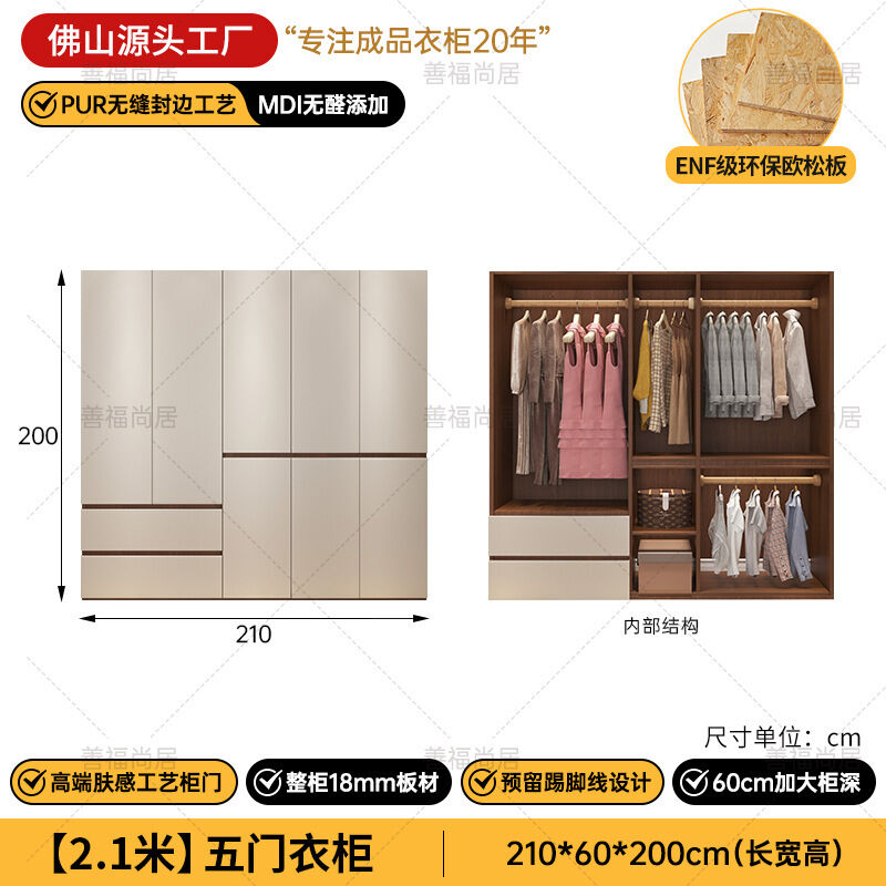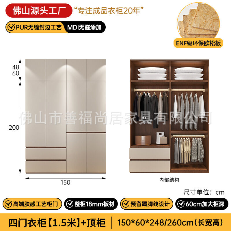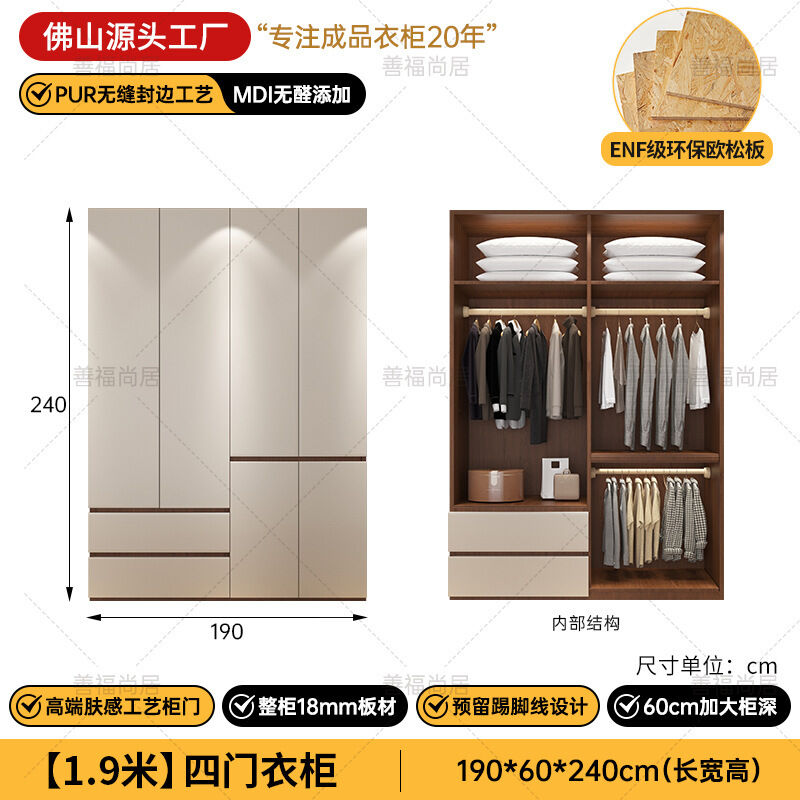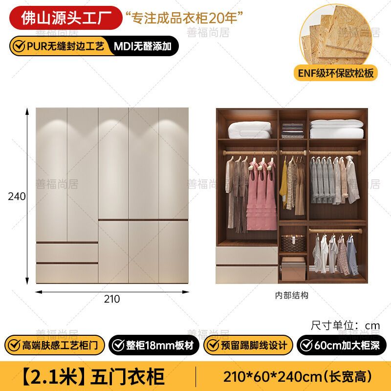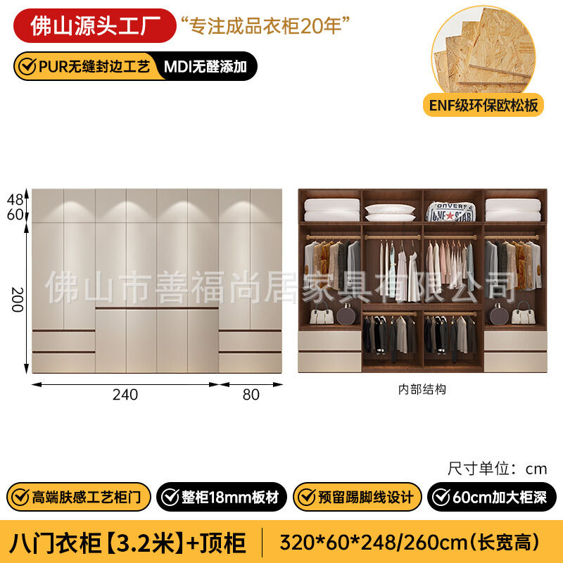 未晚家具舘 ENF級歐松板衣櫃家用臥室18mm加厚板櫃子分段式免拉手組合衣櫃
