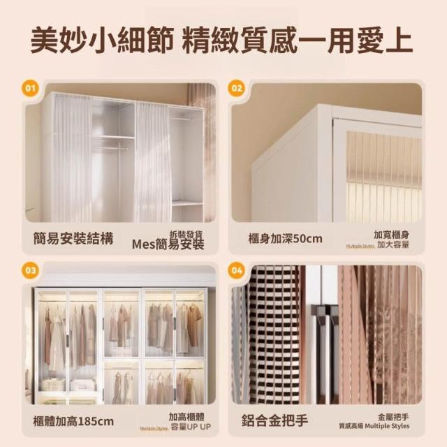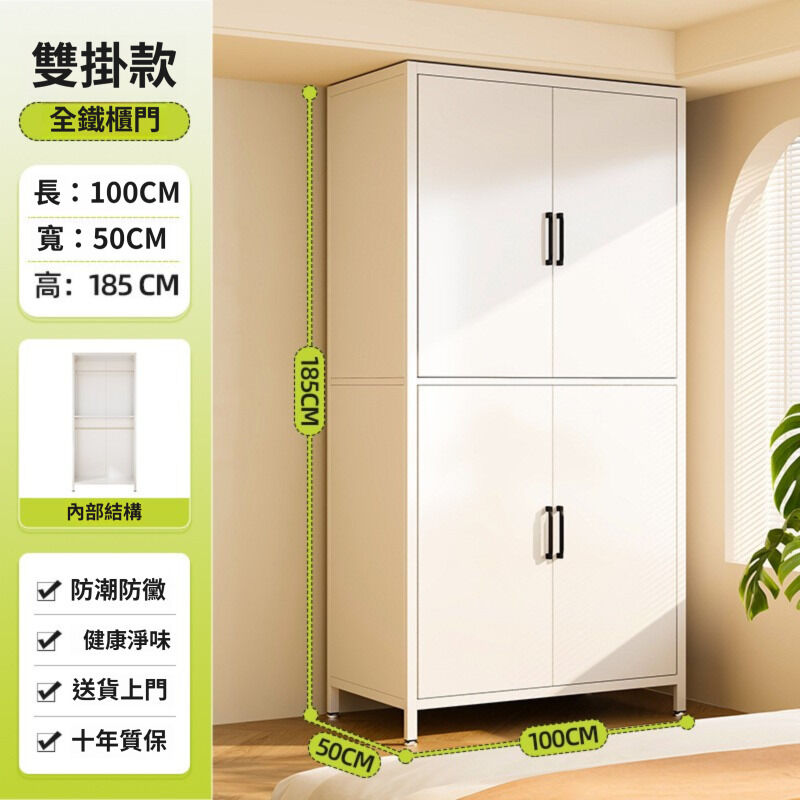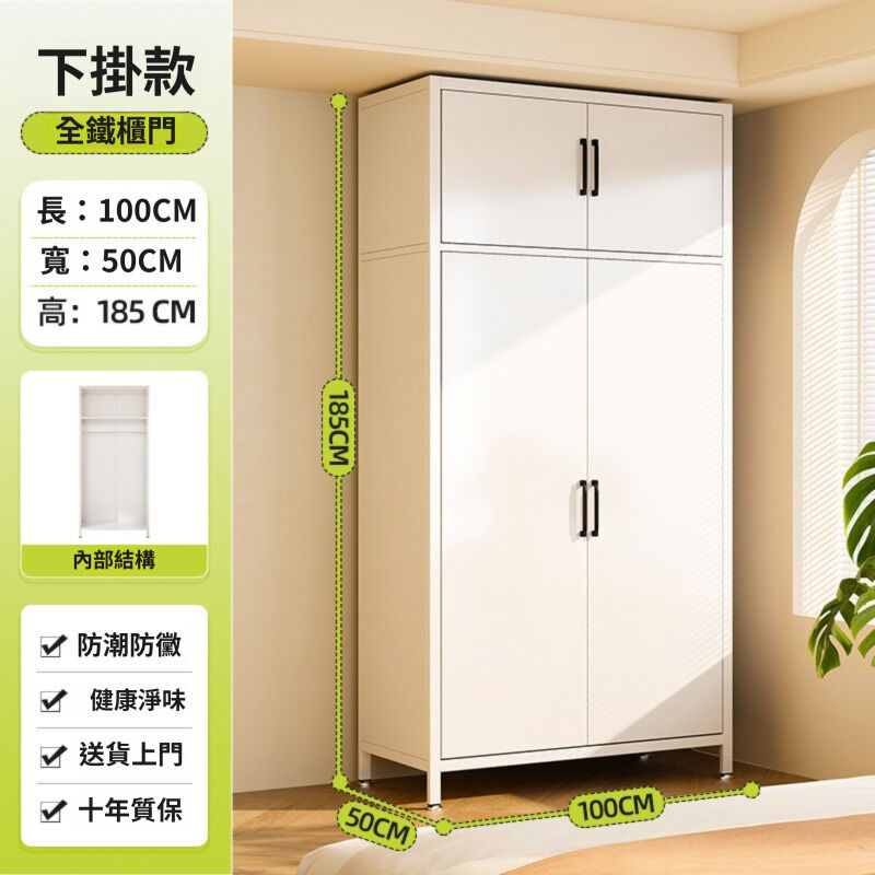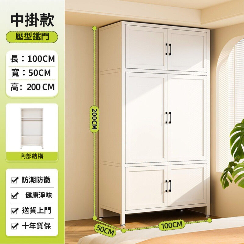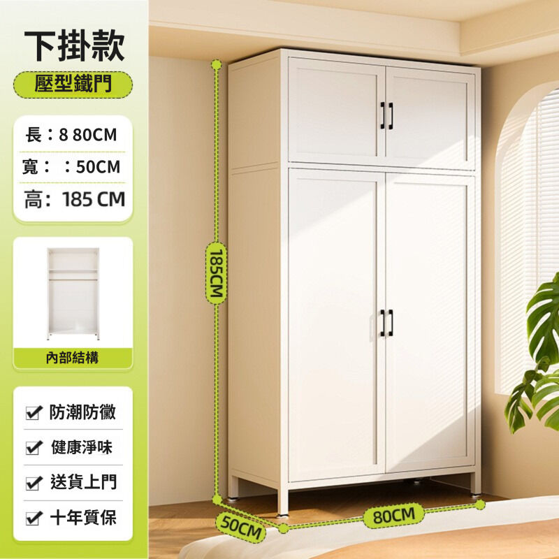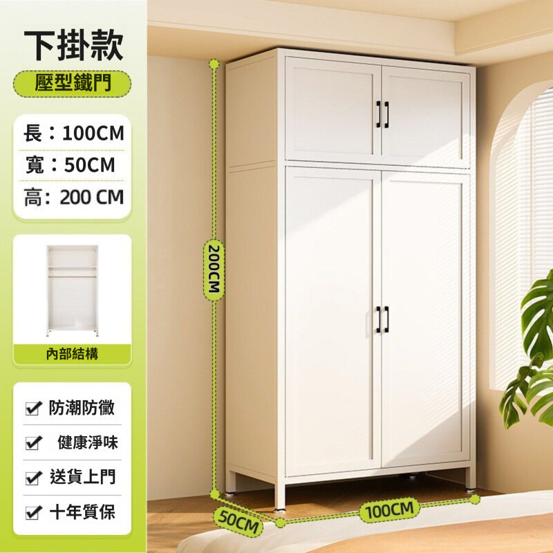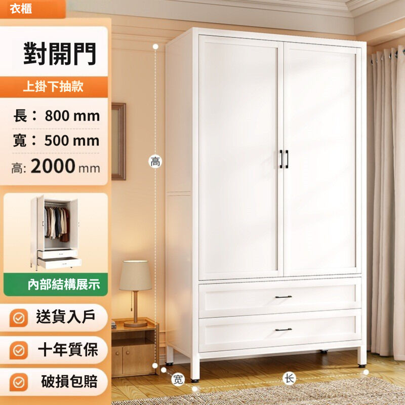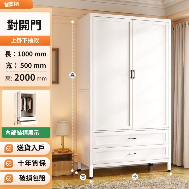 未晚家具舘 衣櫃家用臥室簡易組裝出租房用鐵皮金屬組合鋼製收納櫃子兒童衣櫥