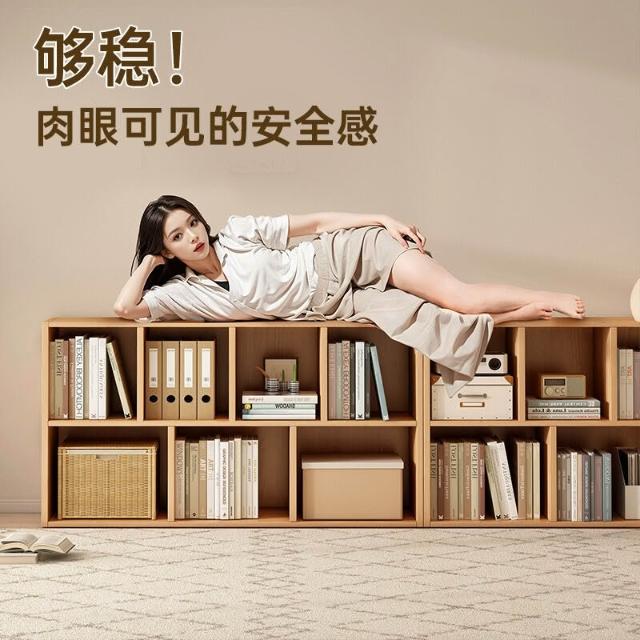 未晚家居館 實木書櫃置物櫃家用客廳靠墻收納櫃儲物櫃矮櫃組合格子櫃落地書架