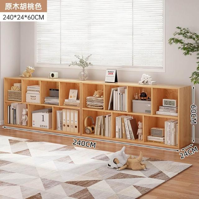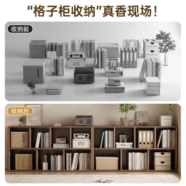 未晚家居館 實木書櫃置物櫃家用客廳靠墻收納櫃儲物櫃矮櫃組合格子櫃落地書架