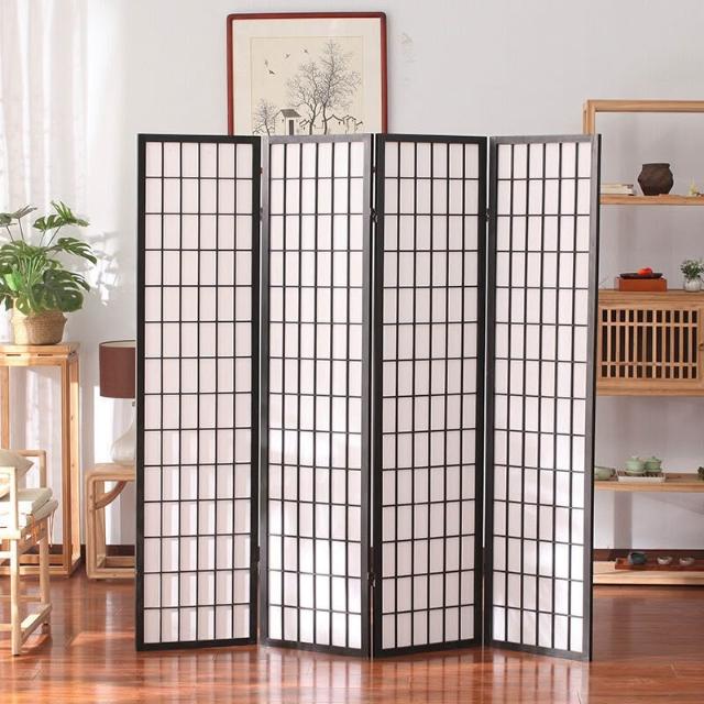 未晚家居館 簡約現代背景墻格木質日式屏風玄關移動隔斷客廳茶室屏風樟子折疊