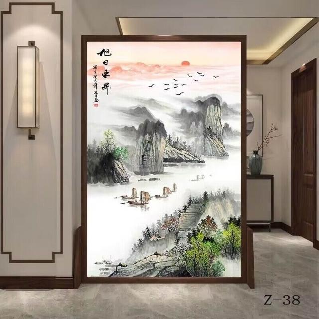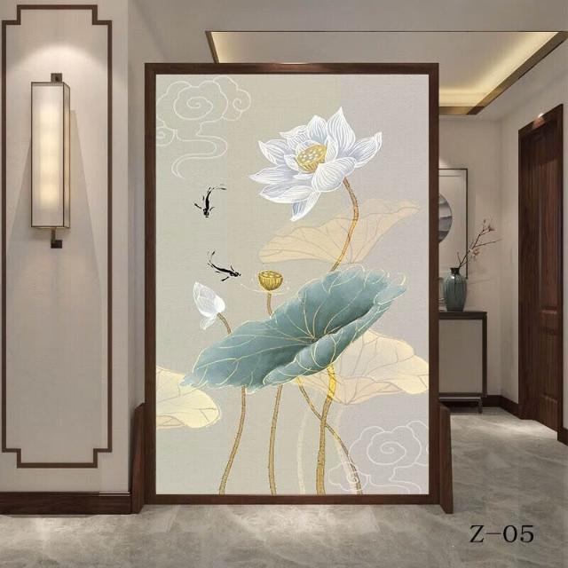 未晚家居館 新中式屏風客廳進門玄關入戶衛生間臥室茶室廁所隔斷座屏雙面荷花