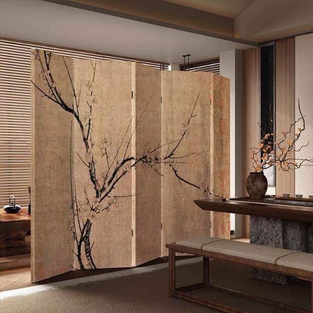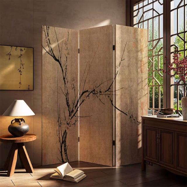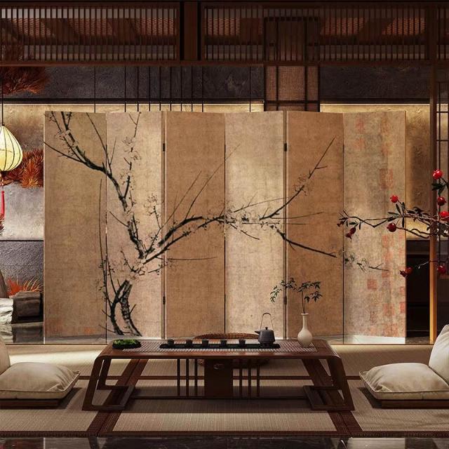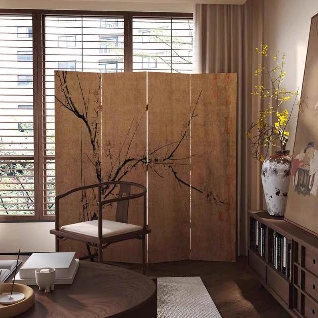未晚家居館 屏風折疊移動新中式古典侘寂實木辦公室隔斷客廳梅花臥室遮擋TTω