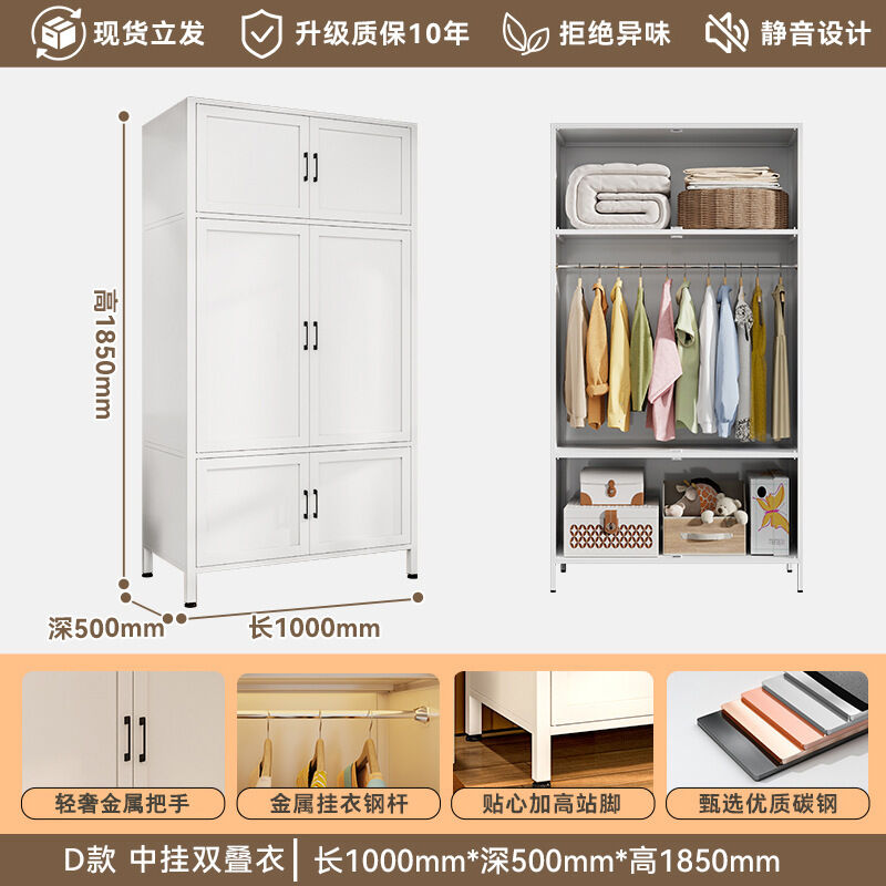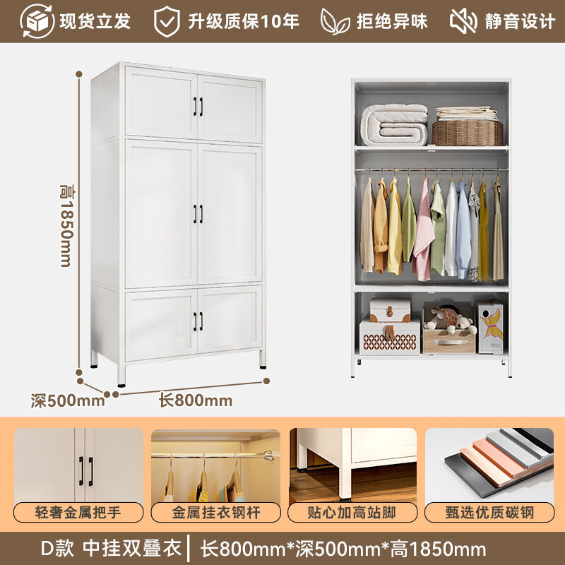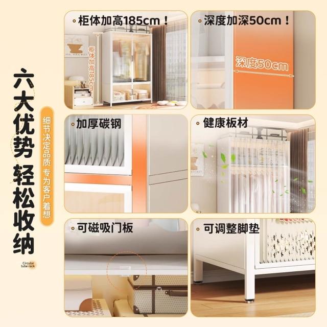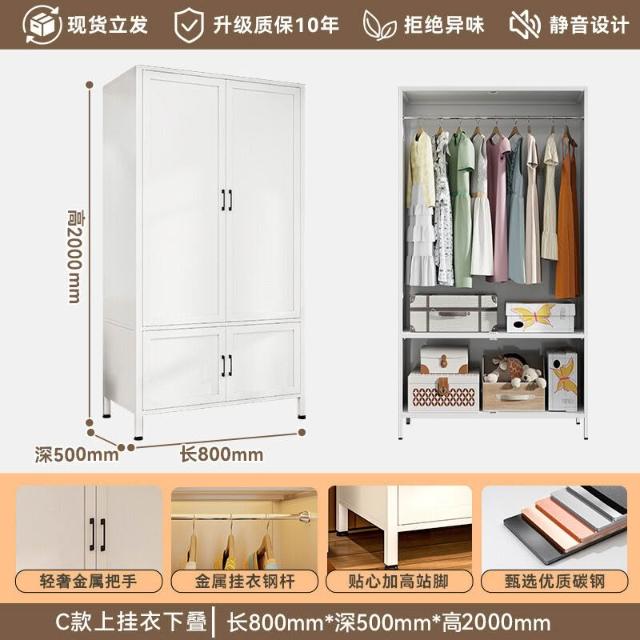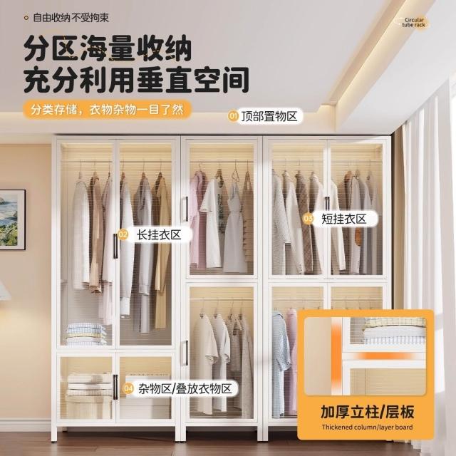 未晚家居馆 鋼製衣櫃臥室家用出租房用簡易組裝鐵皮金屬組合衣櫥衣帽間收納櫃