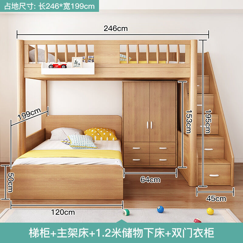 未晚家居馆 交錯式上下床實木上床下桌兒童床書桌一體高箱床省空間錯位雙層床
