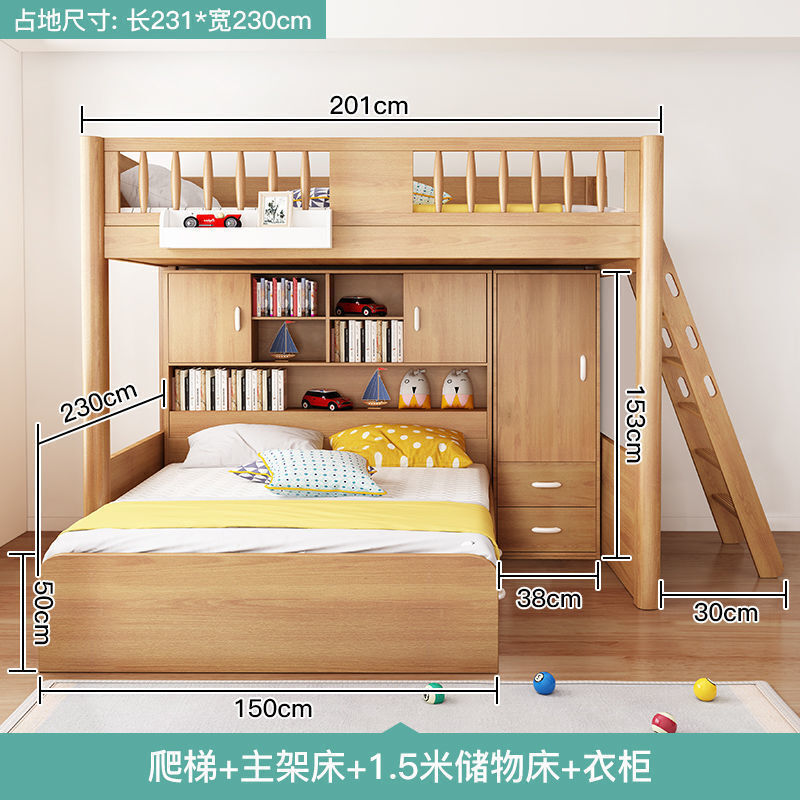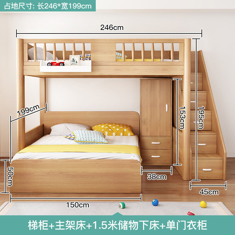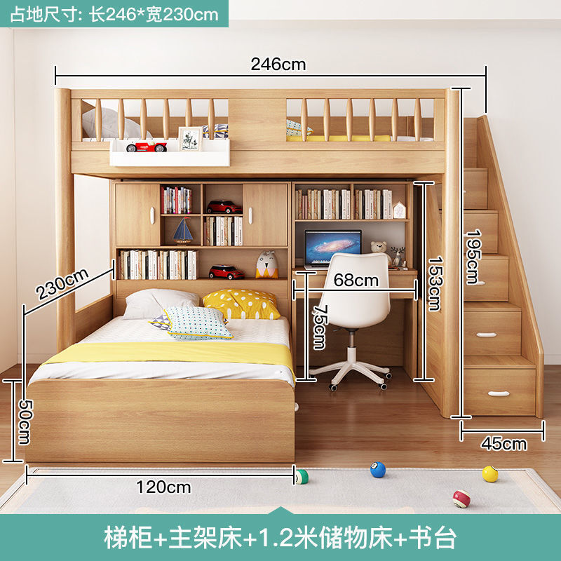 未晚家居馆 交錯式上下床實木上床下桌兒童床書桌一體高箱床省空間錯位雙層床