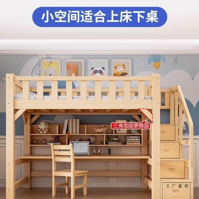 未晚家居馆 全實木高架床上床下桌兒童上下鋪帶書桌組合成人宿舍多功能高低床
