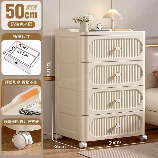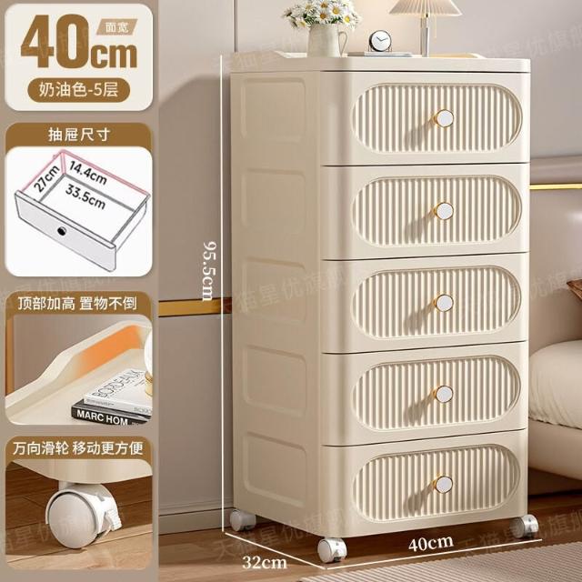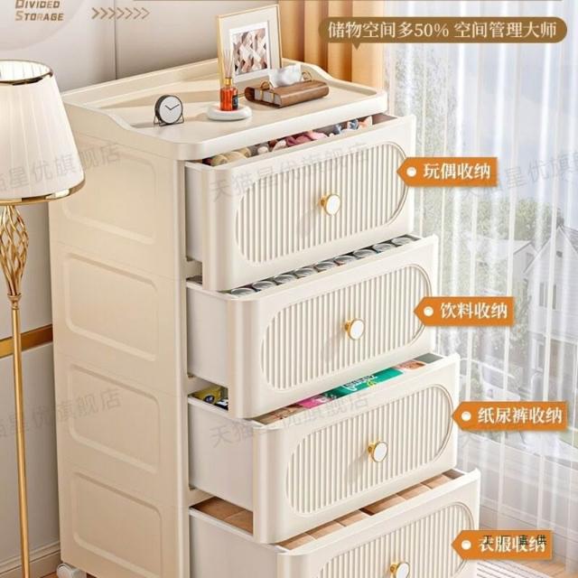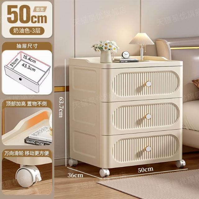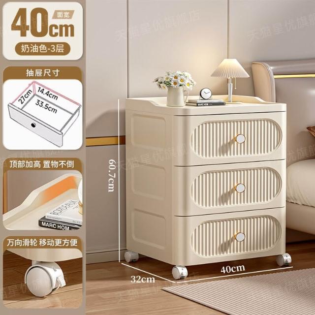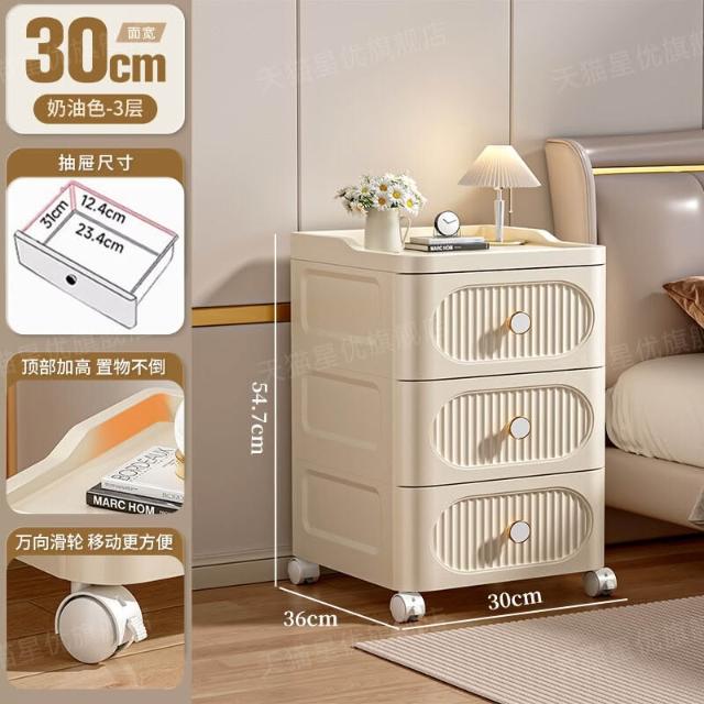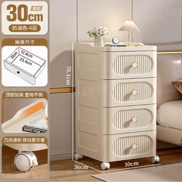 未晚家具舘 抽屜式收納櫃家用多層零食儲物櫃臥室塑料床頭櫃可移動置物櫃