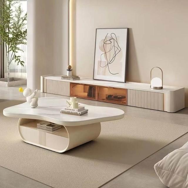 未晚家具舘 北歐簡約 廠傢直銷 免運奶油風雲朵巖闆茶幾傢用小戶型帶儲物抽屜客廳創意茶桌邊幾組閤 LTUX