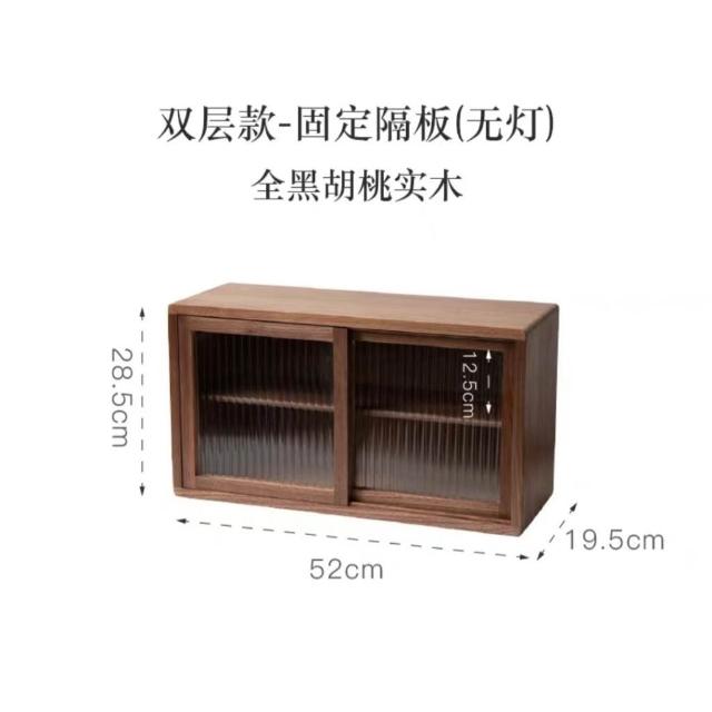 未晚家居館 高檔實木免安裝黑衚桃木輕奢複古廚房餐邊長虹玻璃櫃 桌上收納櫃 實木收納櫃 茶具收納櫃 桌上展示櫃 儲物櫃廚房 實木櫃