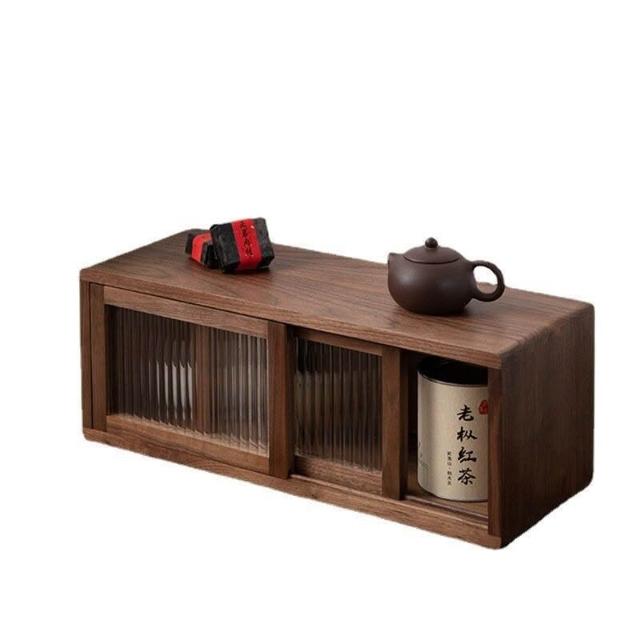 未晚家居館 高檔實木免安裝黑衚桃木輕奢複古廚房餐邊長虹玻璃櫃 桌上收納櫃 實木收納櫃 茶具收納櫃 桌上展示櫃 儲物櫃廚房 實木櫃
