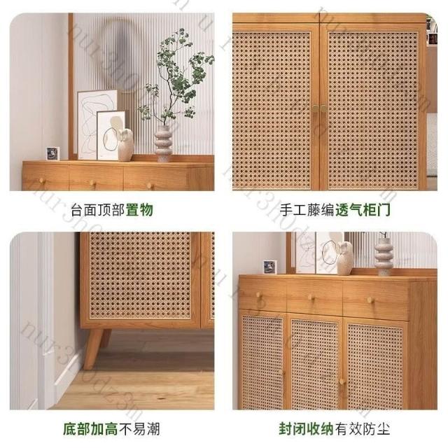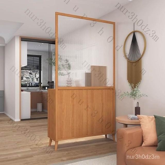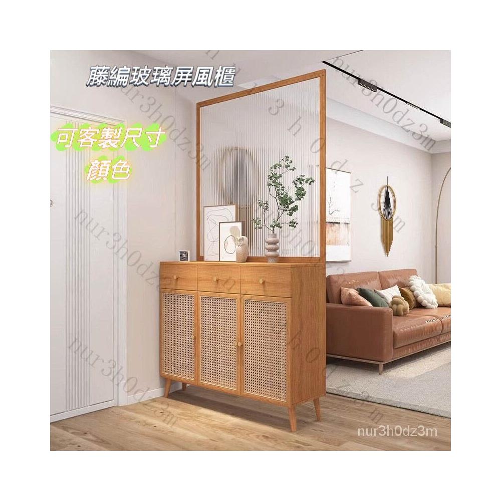 未晚家具舘 新款#推薦長虹玻璃 客廳隔斷櫃 傢用鞋櫃 入戶玄關櫃 新中式 原木藤編屏風定製 入戶客廳高酒櫃 屏風裝飾櫃 SLR