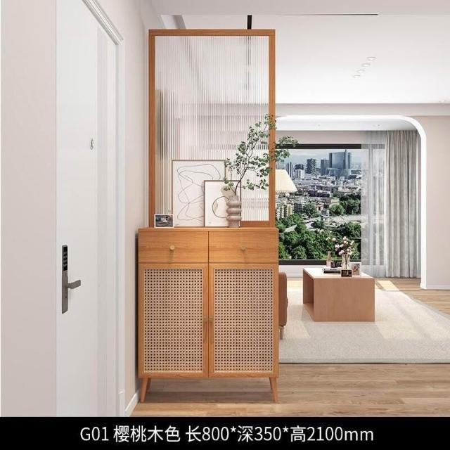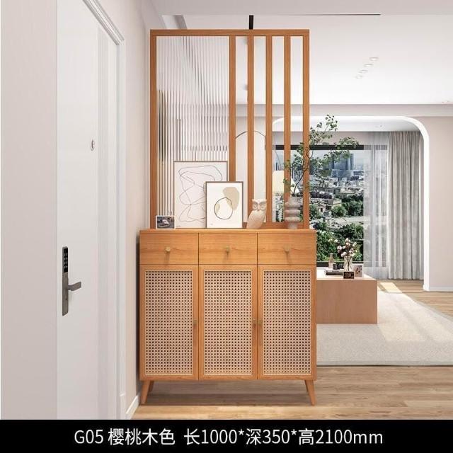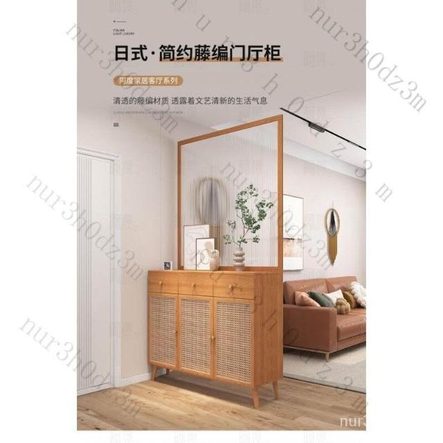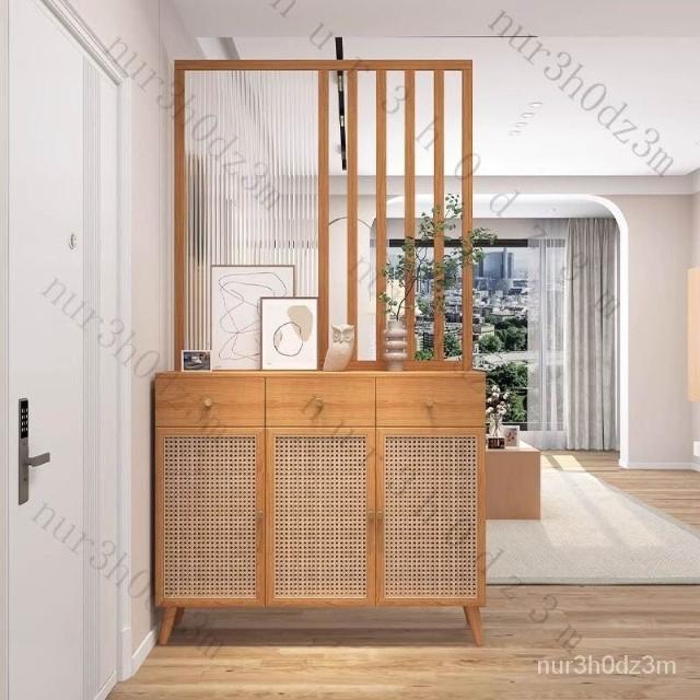 未晚家具舘 新款#推薦長虹玻璃 客廳隔斷櫃 傢用鞋櫃 入戶玄關櫃 新中式 原木藤編屏風定製 入戶客廳高酒櫃 屏風裝飾櫃 SLR