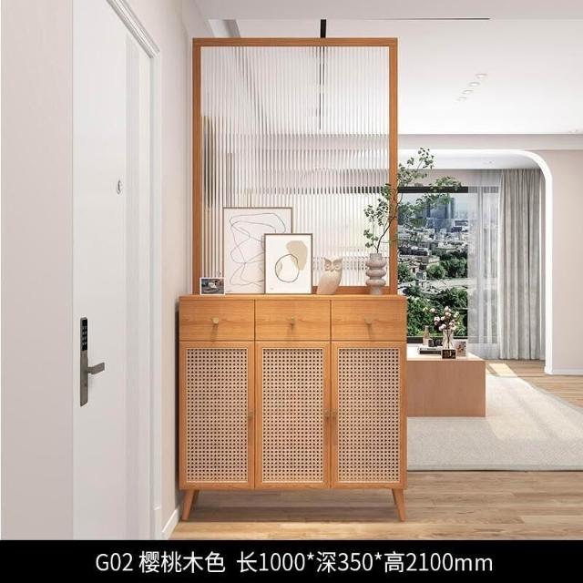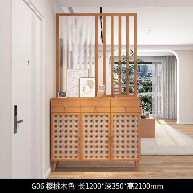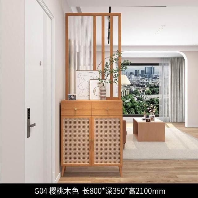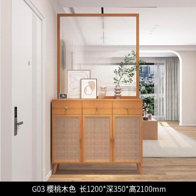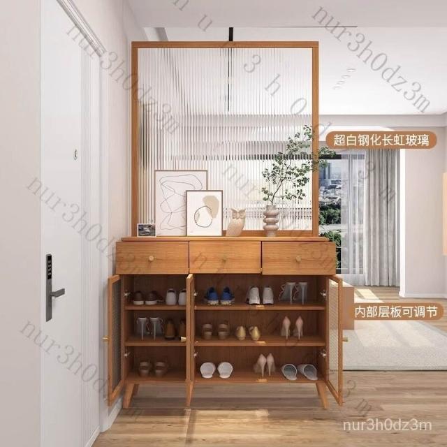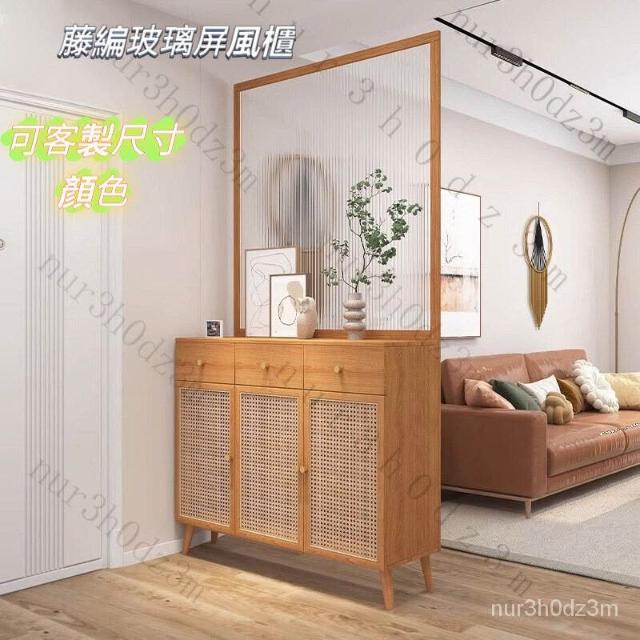 未晚家具舘 新款#推薦長虹玻璃 客廳隔斷櫃 傢用鞋櫃 入戶玄關櫃 新中式 原木藤編屏風定製 入戶客廳高酒櫃 屏風裝飾櫃 SLR