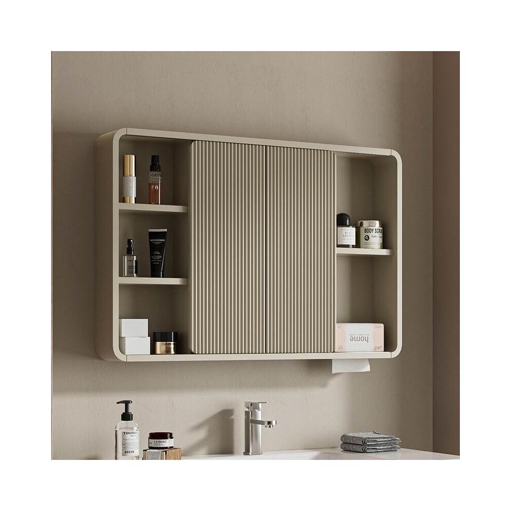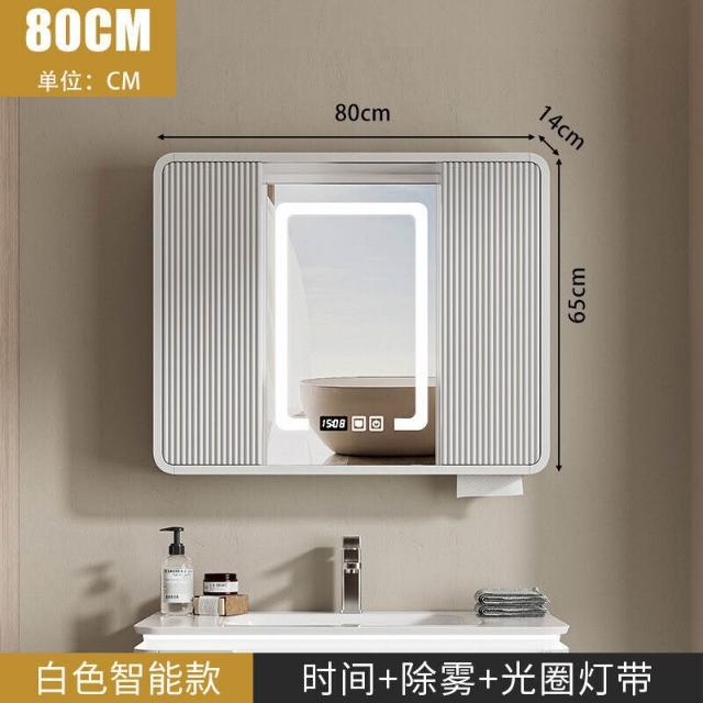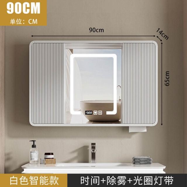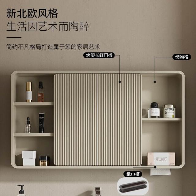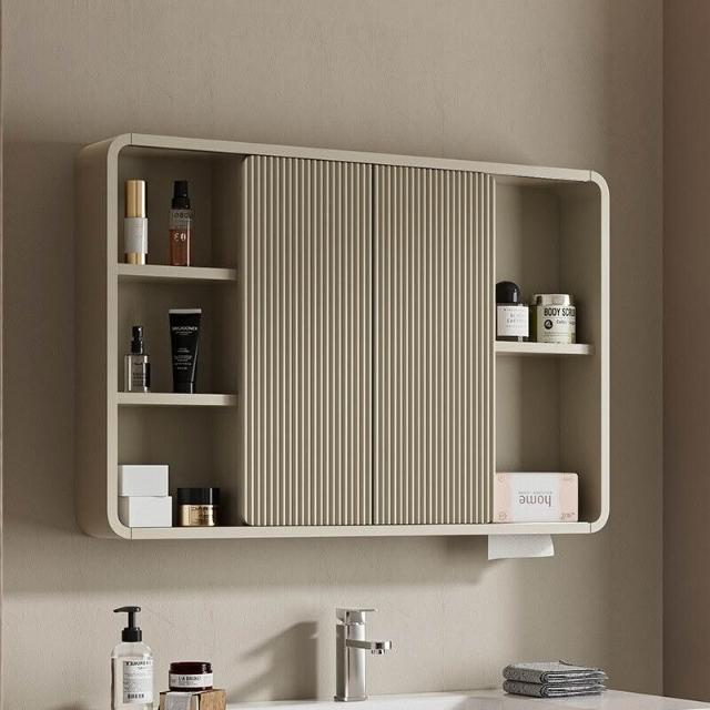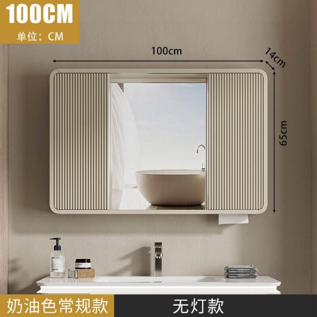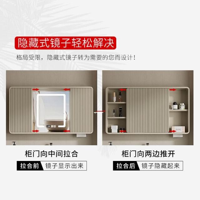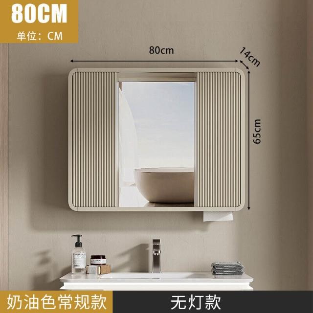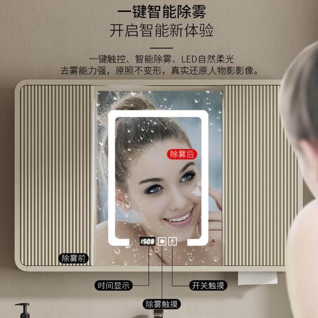 未晚家具舘 開立發票奶油風鏡櫃 浴室櫃 隱藏式風水鏡櫃 推拉門 智能除霧鏡櫃 衛生間儲物櫃 掛牆式收納櫃