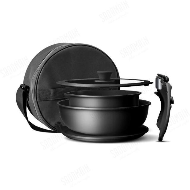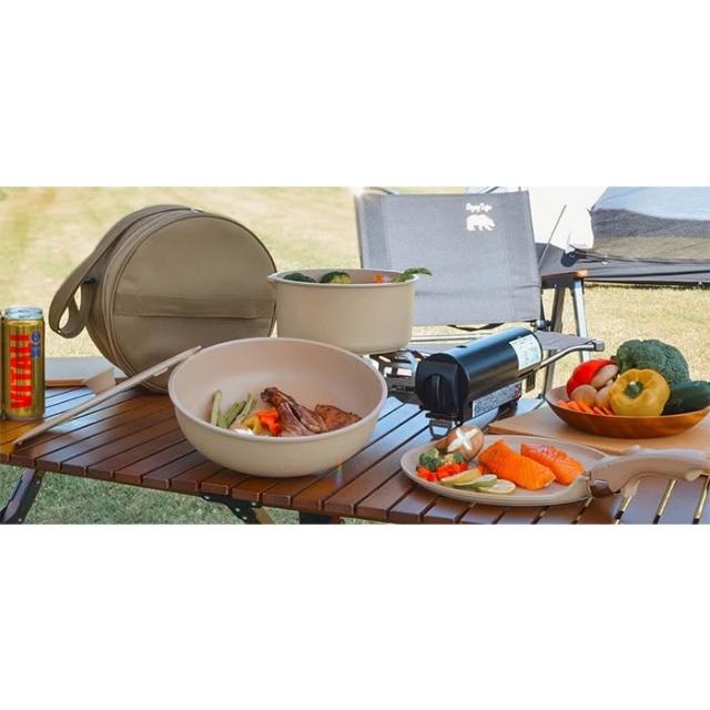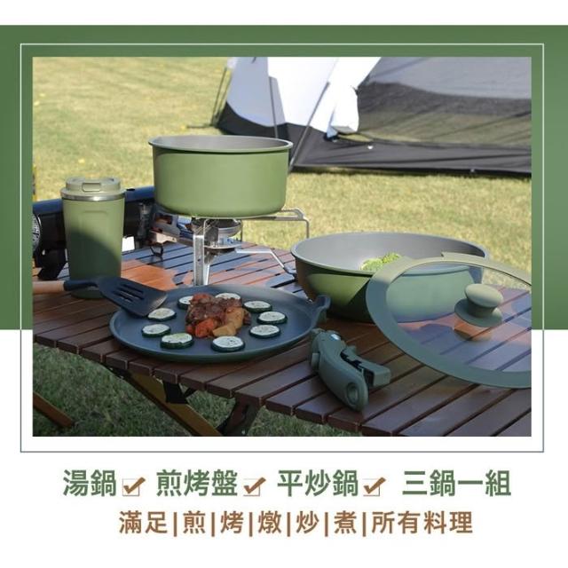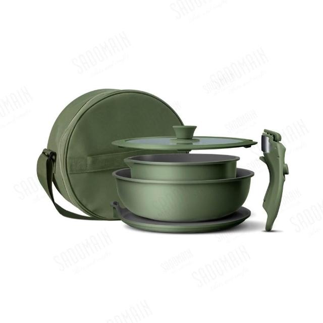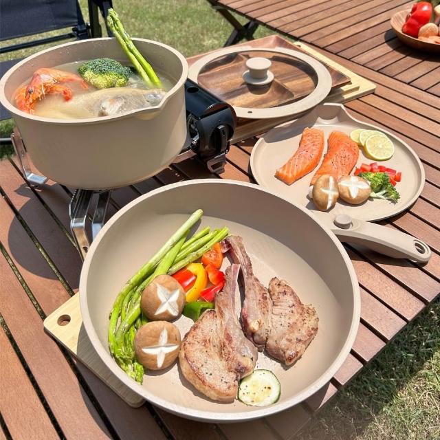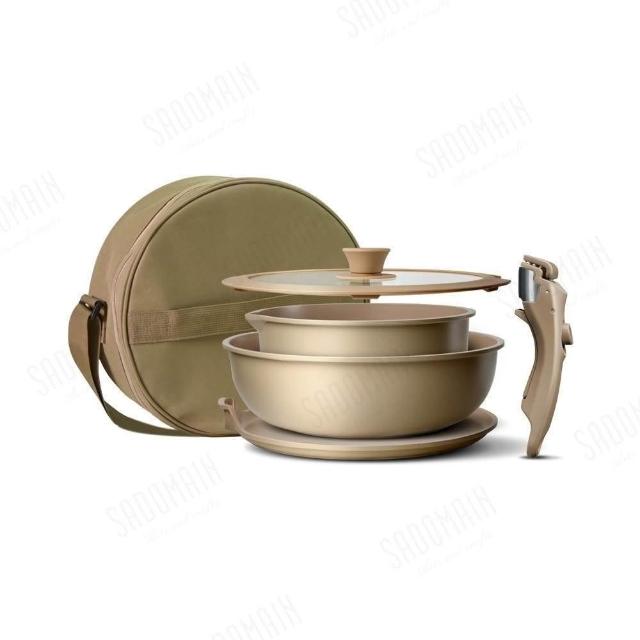 SADOMAIN 仙德曼仙德曼鑄造不沾煎烤盤(7件露營鍋具組)可拆卸把手 附圓形收納袋 AG026 不沾平底鍋 不沾平煎盤 露營烤盤 不沾鍋