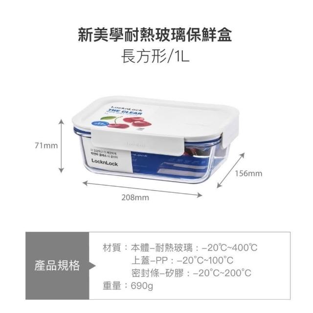 LocknLock 樂扣樂扣樂扣樂扣新美學耐熱玻璃保鮮盒 LNG445WHT 副食品保鮮盒 樂扣玻璃保鮮盒 副食品盒 1L 750ML