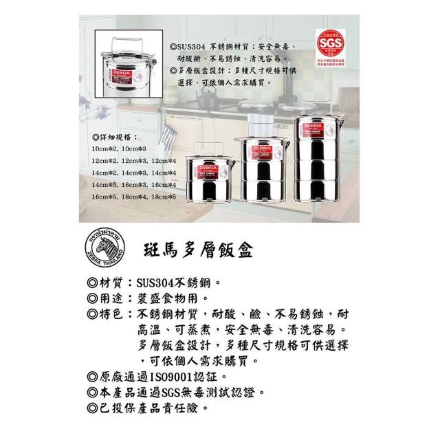 ZEBRA 斑馬牌斑馬多層飯盒 10cm 12cm 14cm 餐盒 多層飯盒 不鏽鋼提鍋 便當盒 多層便當盒 304不銹鋼便當盒