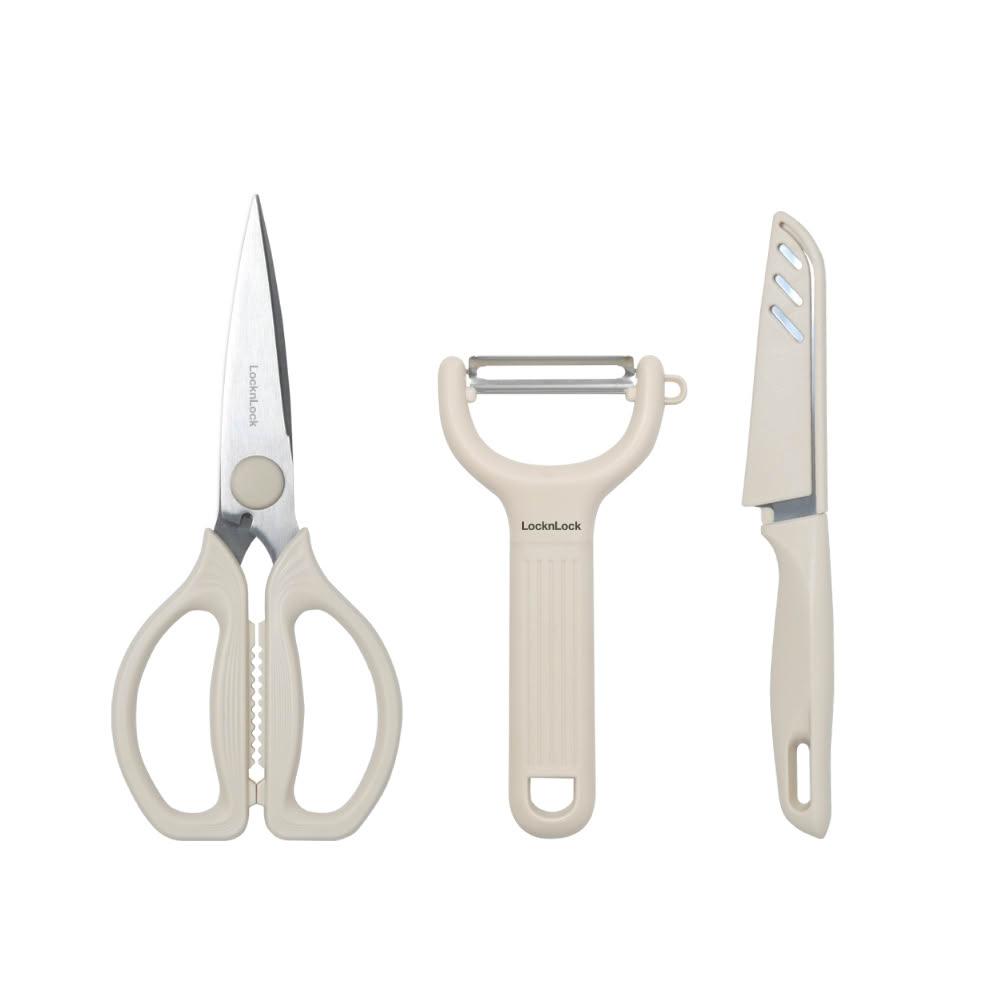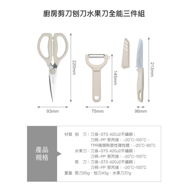 LocknLock 樂扣樂扣樂扣樂扣廚房剪刀刨刀水果刀全能三件組(CKK209) 料理器具 料理剪刀 菜刀 削皮器 刀 廚房剪 烘焙