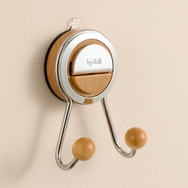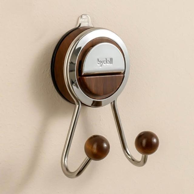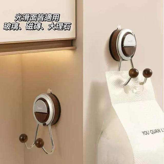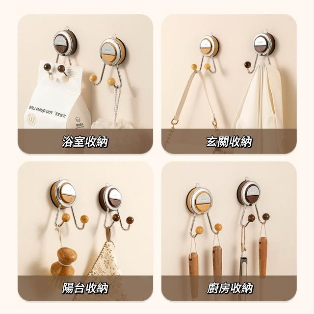 MUGLOW.木光無痕吸盤掛勾 胡桃木色 收納 雙鉤 木質圓頭 浴室掛勾 免釘掛鉤 免釘免鑽 強力吸盤 衛浴掛鉤