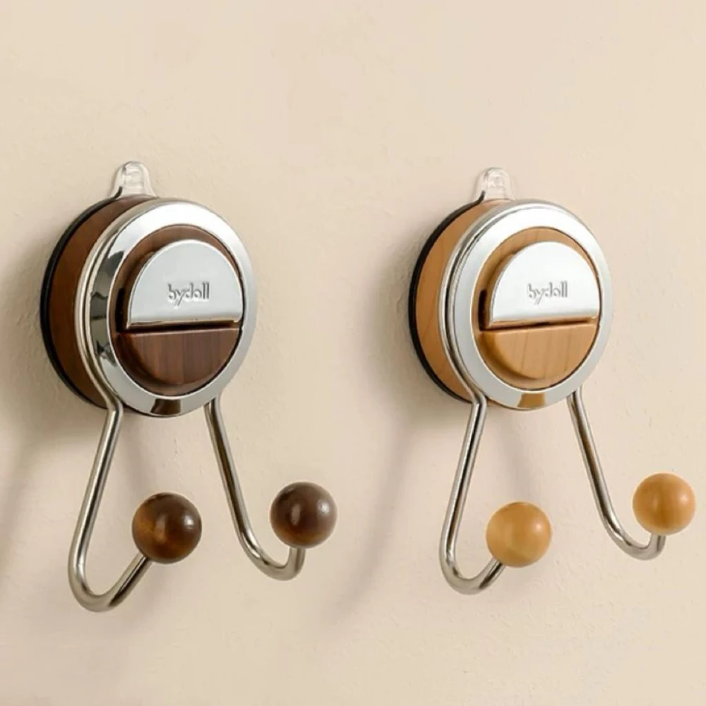 MUGLOW.木光無痕吸盤掛勾 胡桃木色 收納 雙鉤 木質圓頭 浴室掛勾 免釘掛鉤 免釘免鑽 強力吸盤 衛浴掛鉤