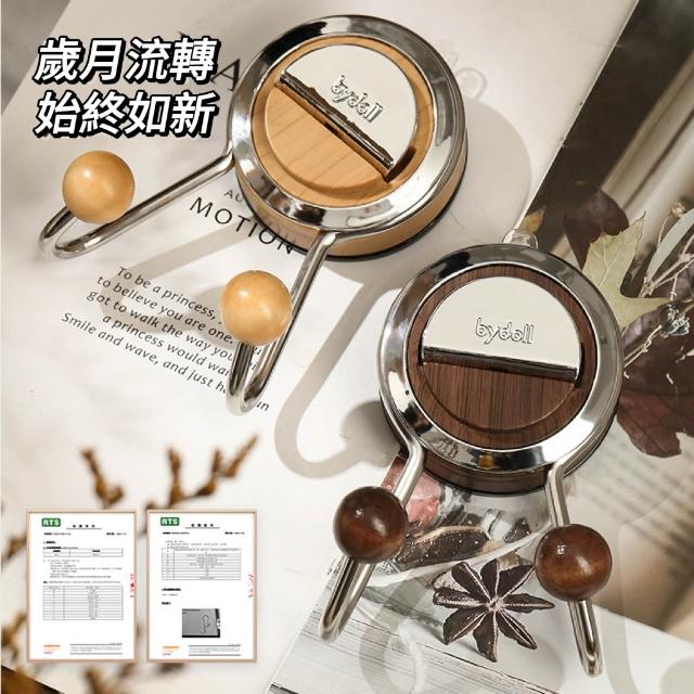 MUGLOW.木光無痕吸盤掛勾 胡桃木色 收納 雙鉤 木質圓頭 浴室掛勾 免釘掛鉤 免釘免鑽 強力吸盤 衛浴掛鉤
