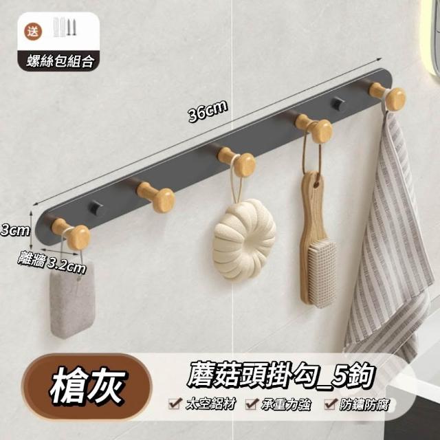 MUGLOW.木光蘑菇頭掛勾 無痕掛勾 實木掛鉤 浴室掛鉤 收納掛鉤 掛勾 鋁合金掛勾架 多功能壁掛 牆面置物架