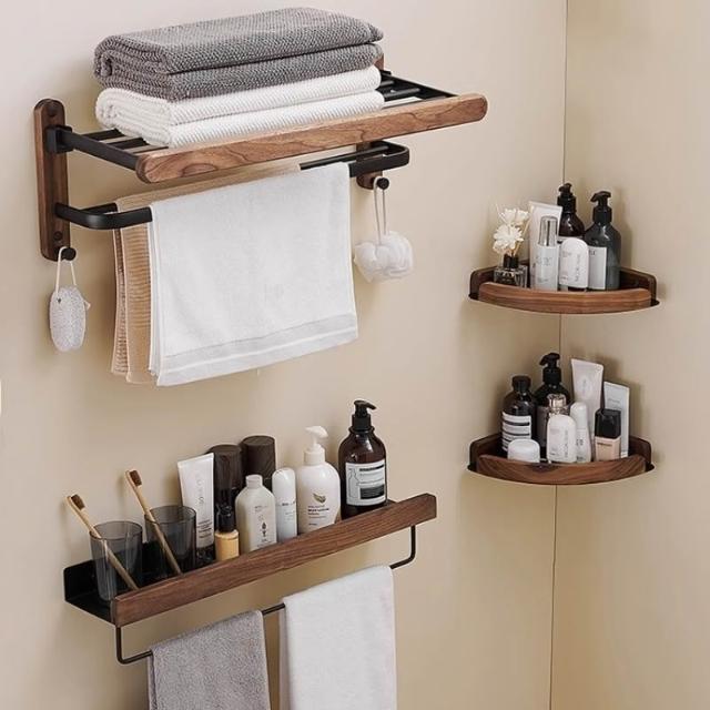 MUGLOW.木光胡木 櫸木 太空鋁 浴室置物架 浴室收納架 無痕貼置物架 無痕貼收納架 三角收納架