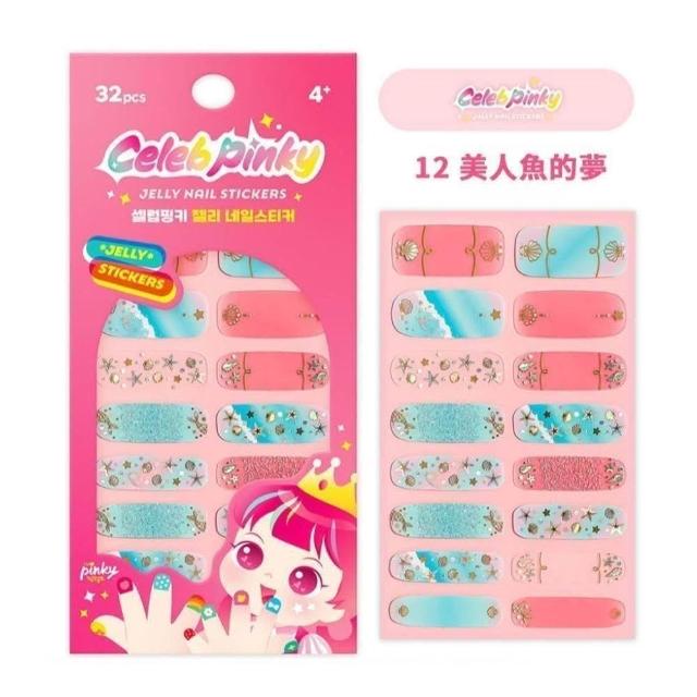 韓國 PINKY 兒童美甲貼 多色32入 共十四款【快速出貨】兒童彩繪 兒童凝膠美甲貼 指甲貼 Celeb Pinky