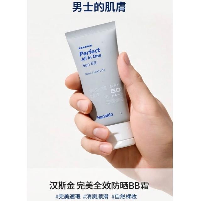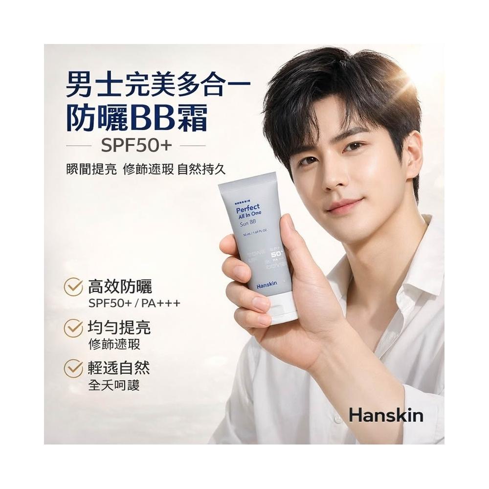 Hanskin 男士完美多合一防曬BB霜 SPF50+(50ml) 遮瑕 修飾毛孔 控油持妝 男生潤色 韓國原裝