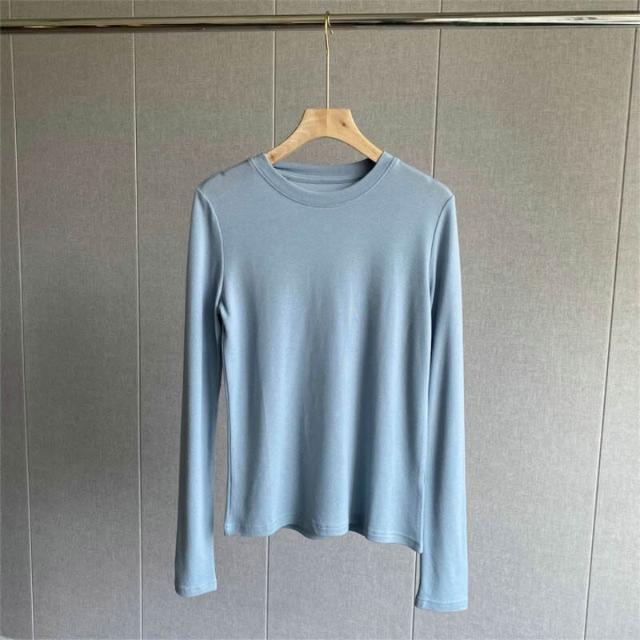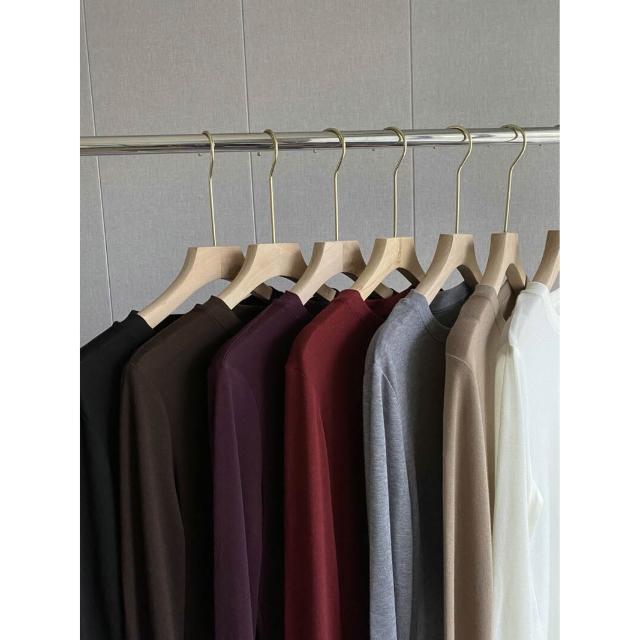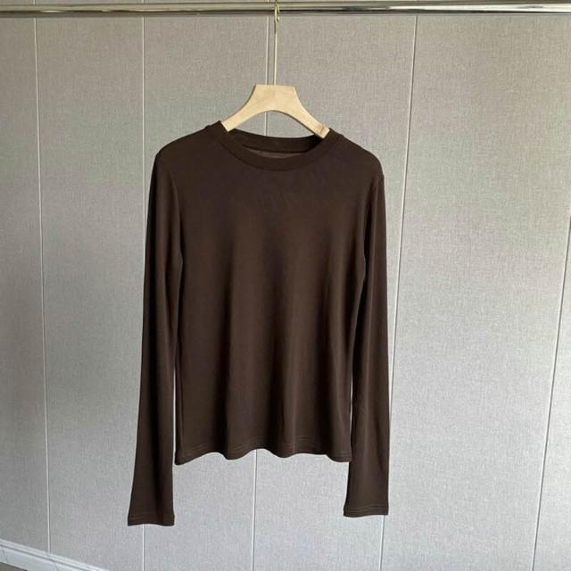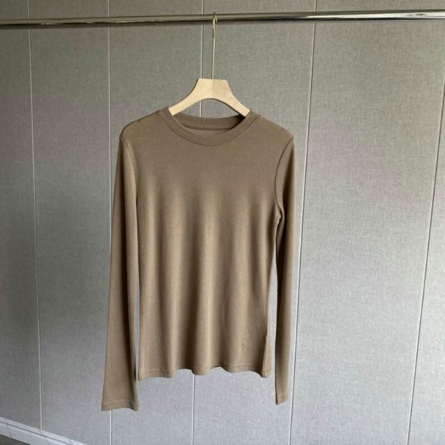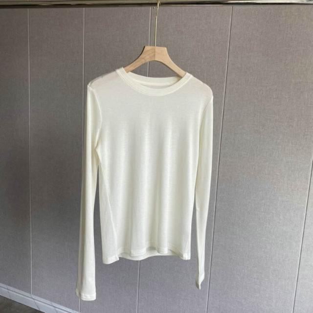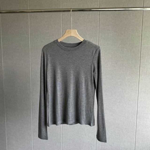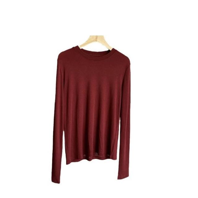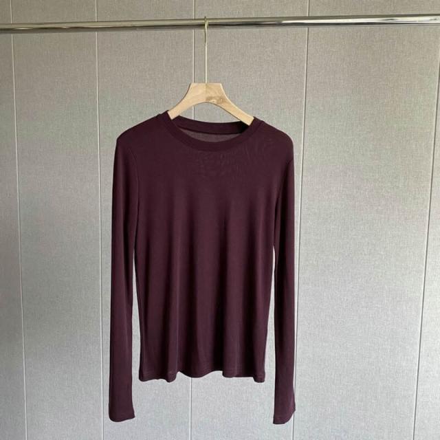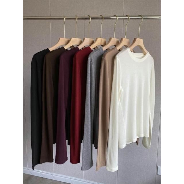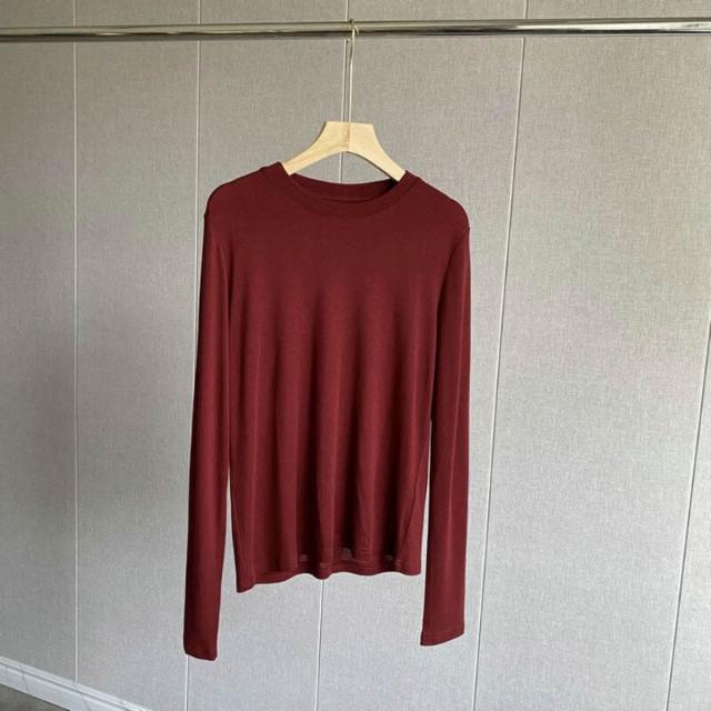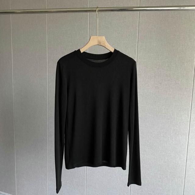 大廠出柔軟chao細萊賽爾+羊毛圓領針織打底衫T恤女早秋F101012 7c2