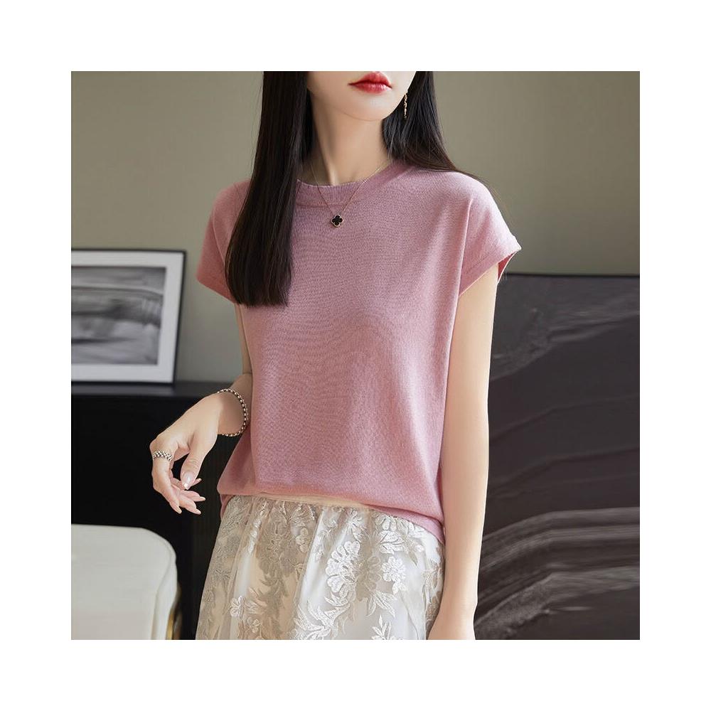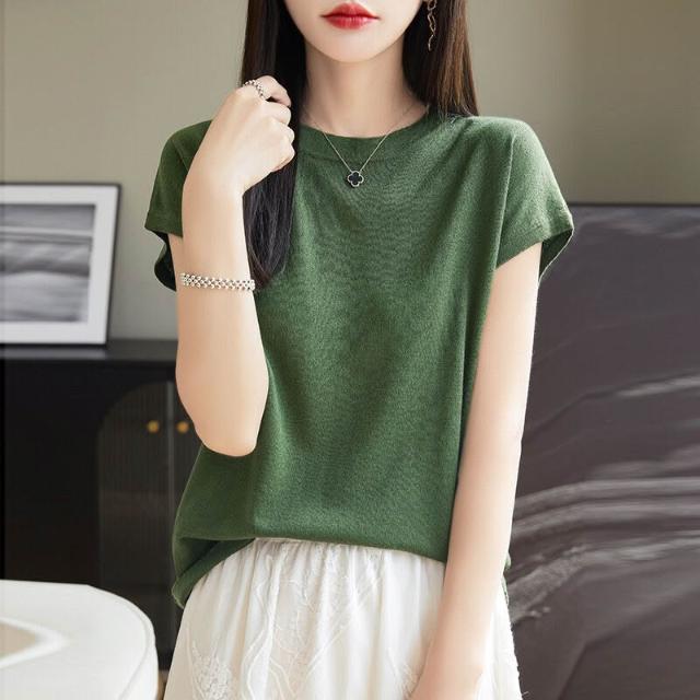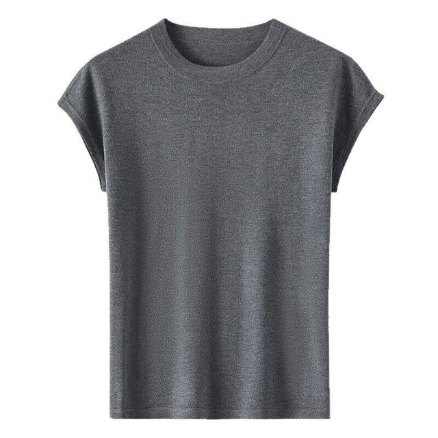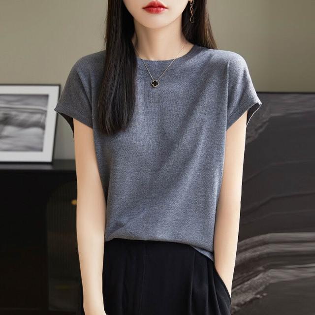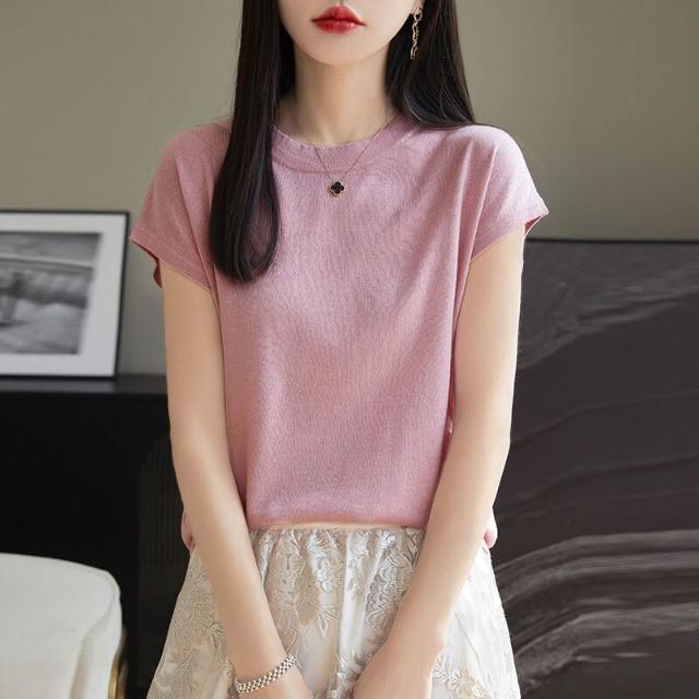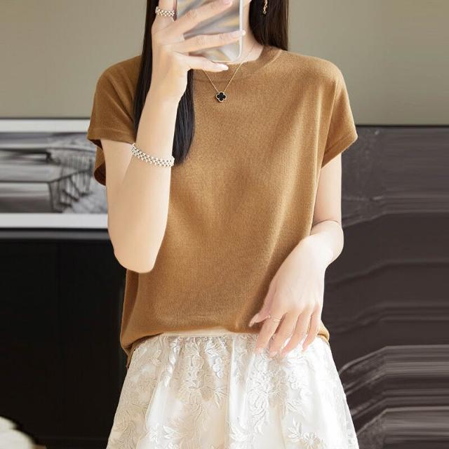 萊賽爾圓領上衣天絲針織短袖t恤女夏2025新款純色百搭打底衫 b9e