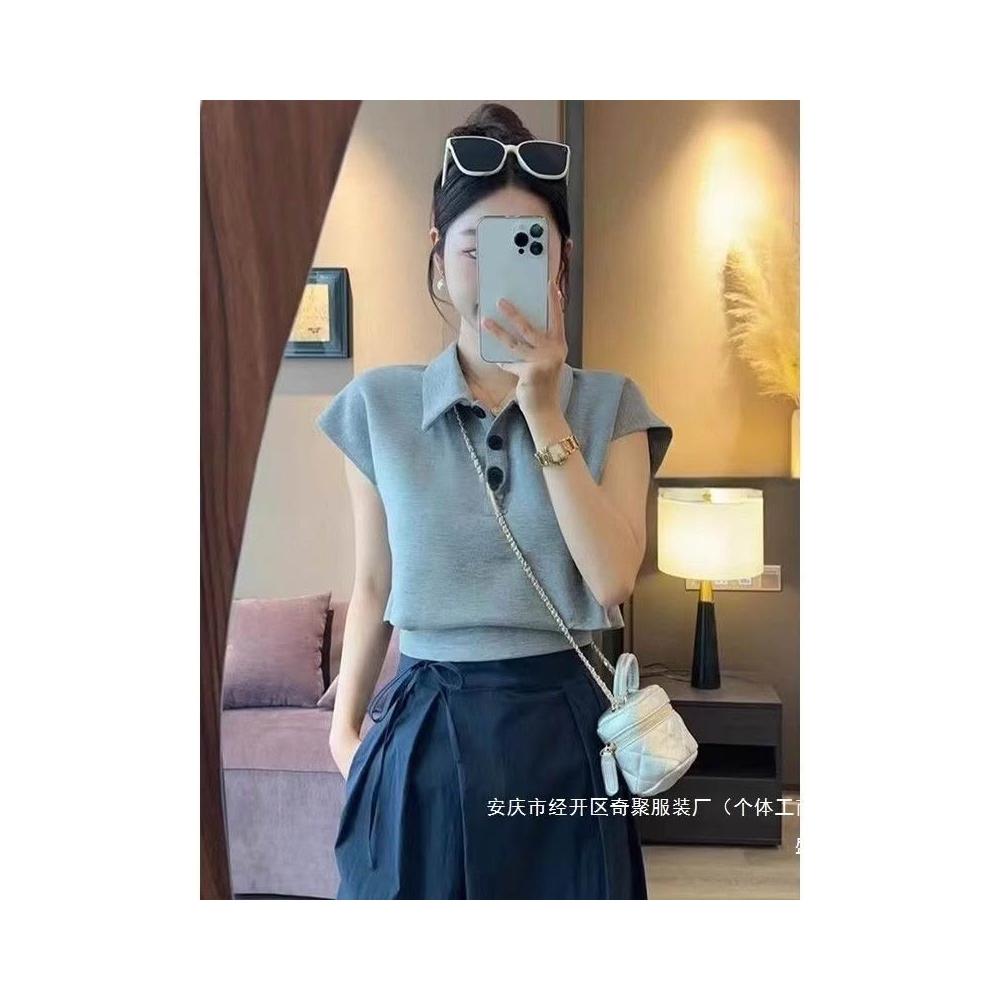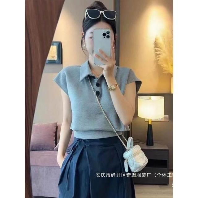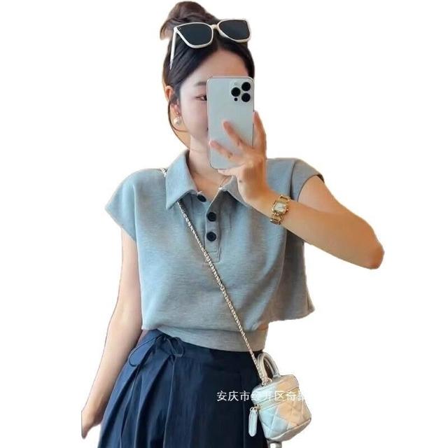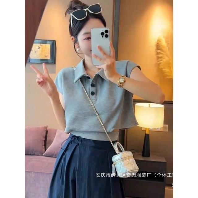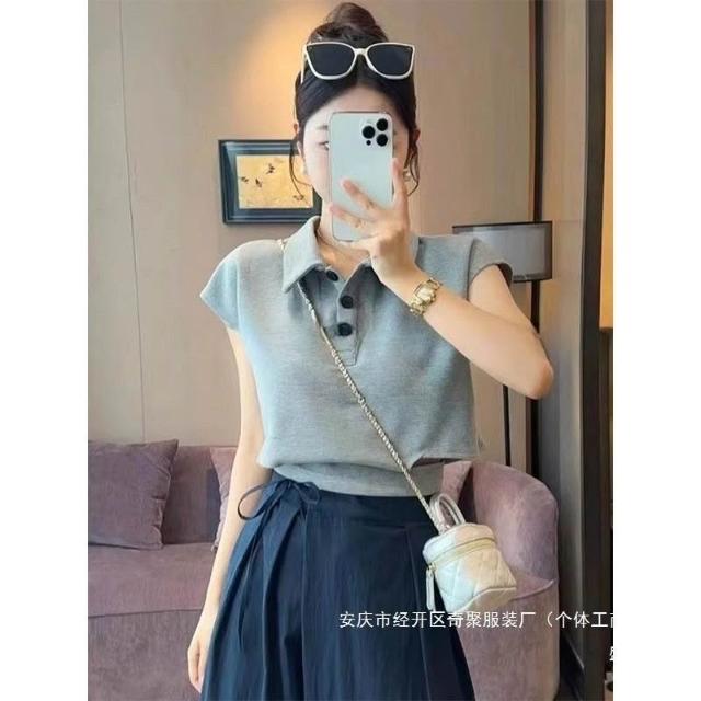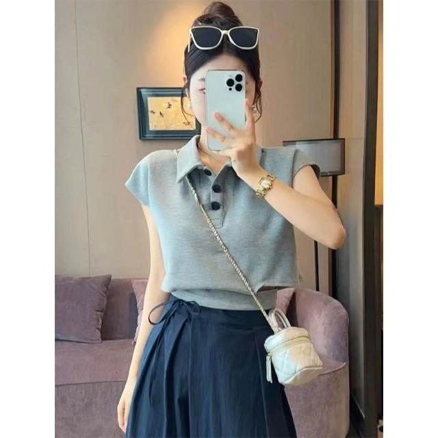 2025夏季新款上衣 夏季超打底衫好看修身新款T恤 顯瘦紐扣短袖女 9bc