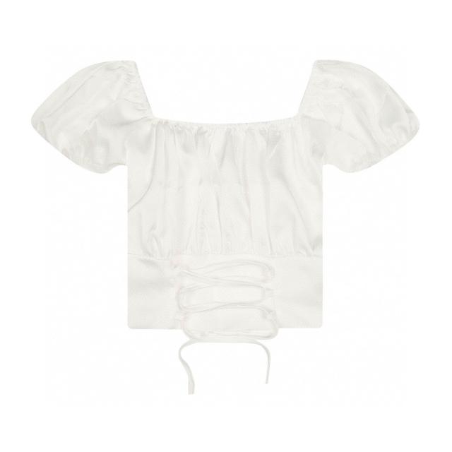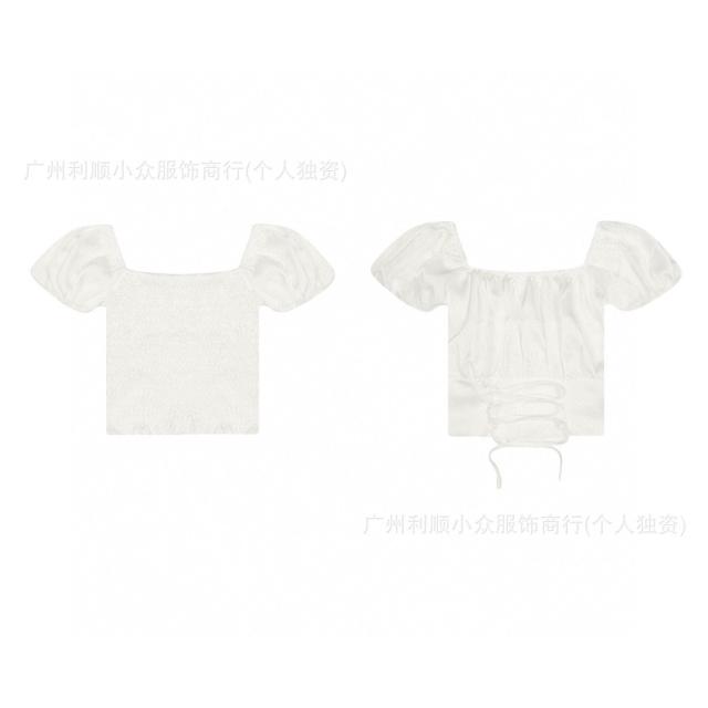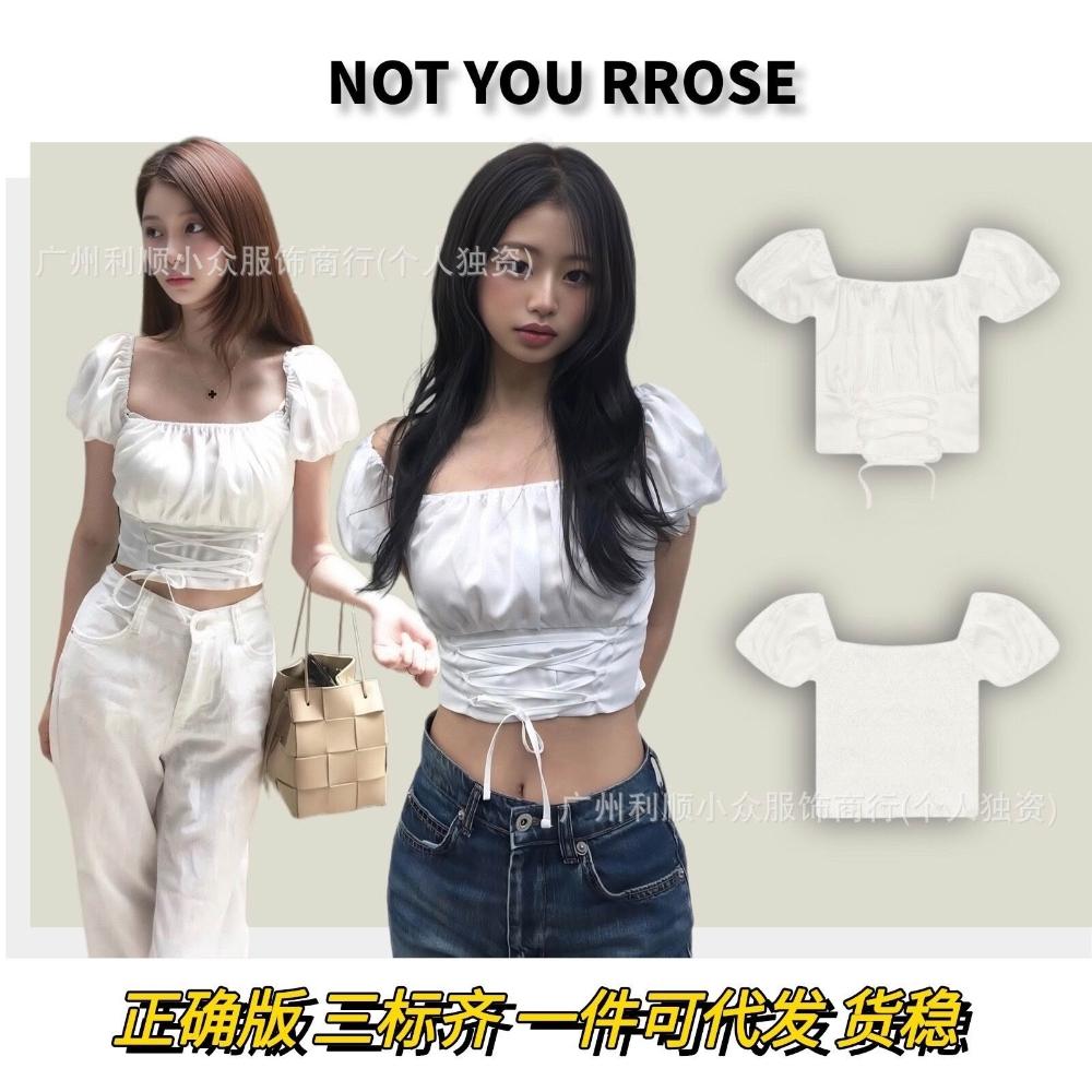 正確版Notyourrose 泡泡袖綁帶短袖上衣辣妹修身短款低領上衣 960