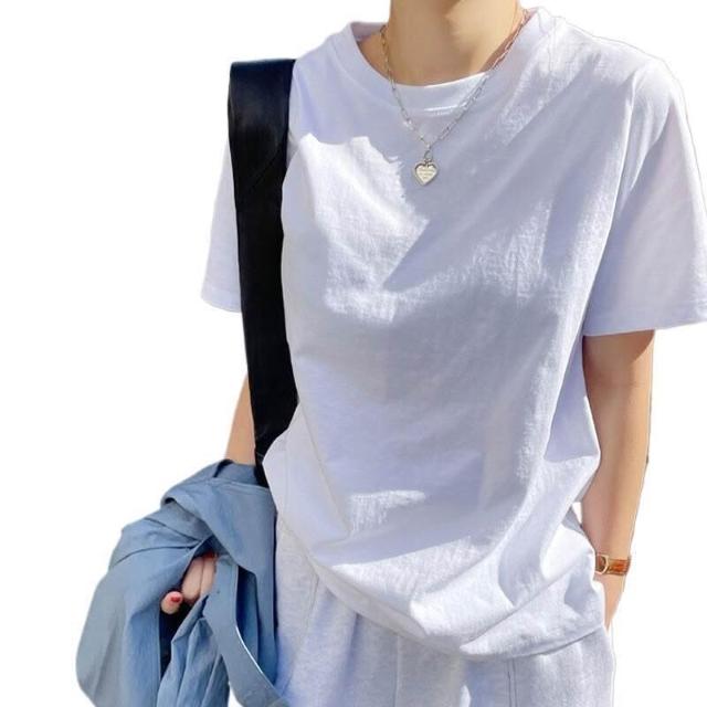 正肩白色t恤女設計感小眾顯瘦薄款上衣夏季春秋內搭短袖寬松大碼 783