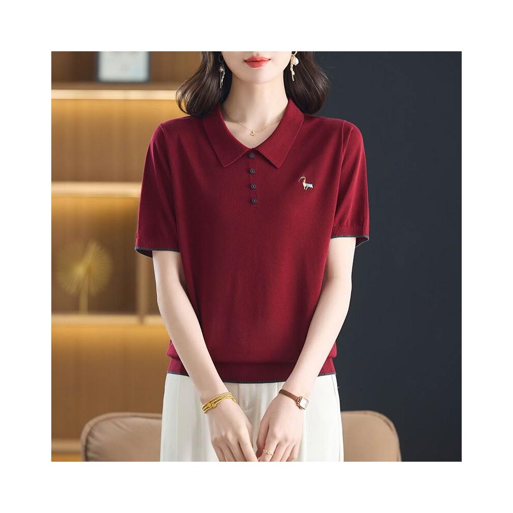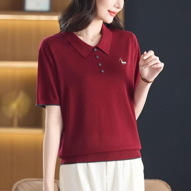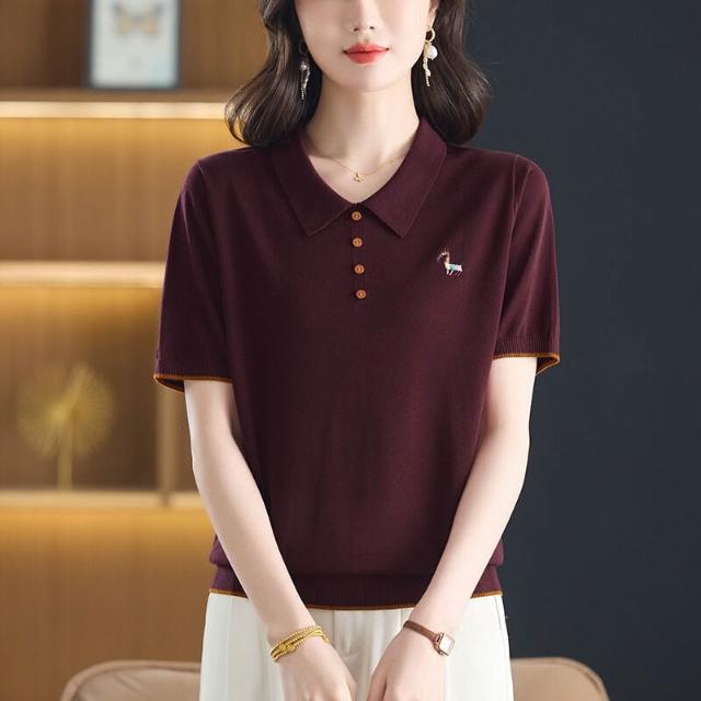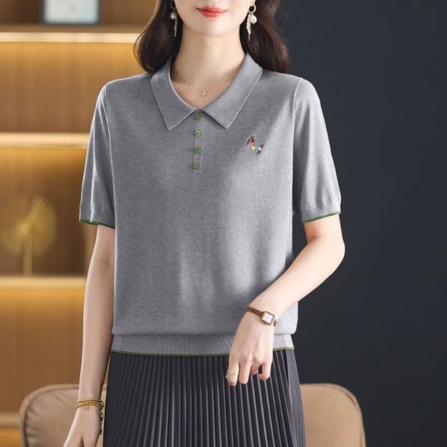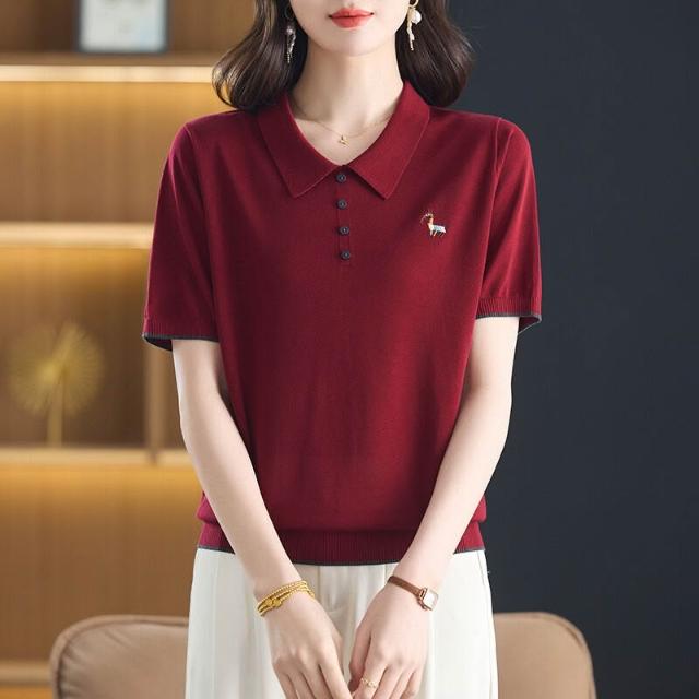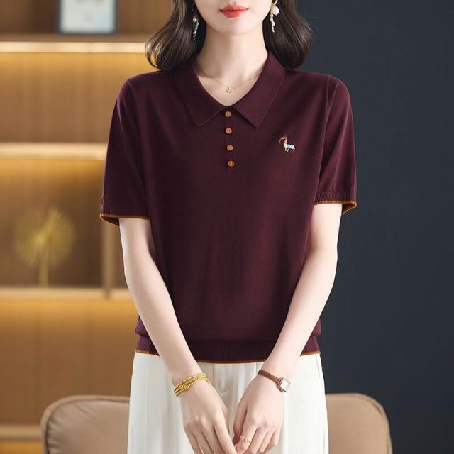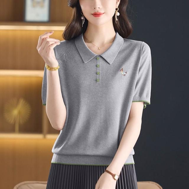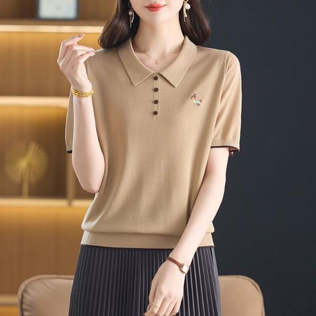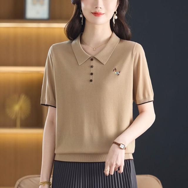 天絲萊賽爾2025年夏季新款大碼女裝時尚娃娃領短袖t恤針織衫小衫 ef5