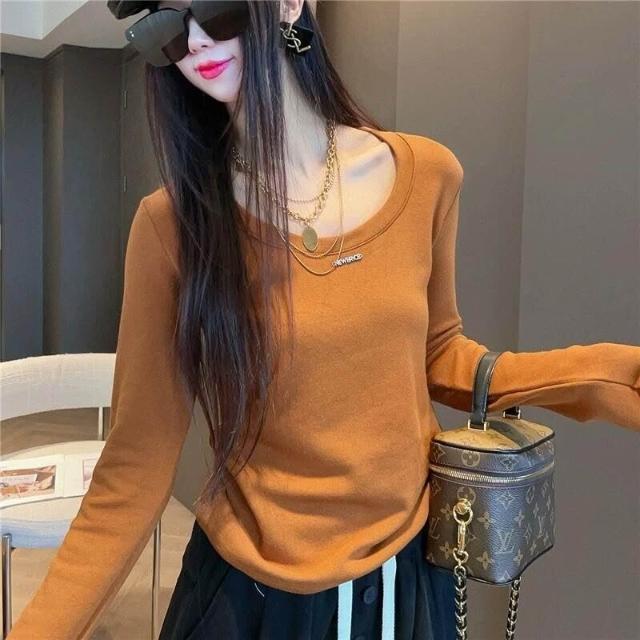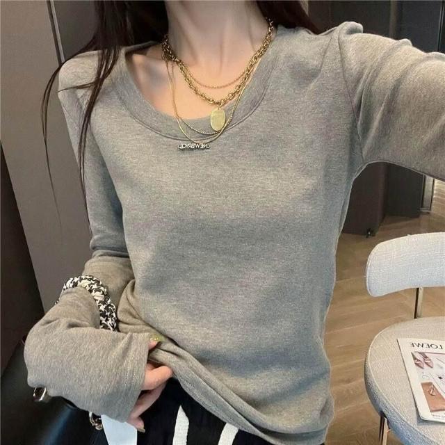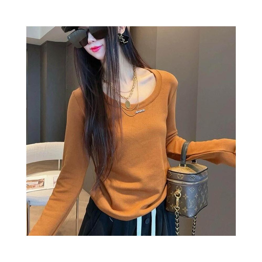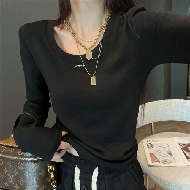 純棉長袖打底衫女2025秋季大碼內搭歐貨洋氣小衫修身顯瘦上衣t恤 feb