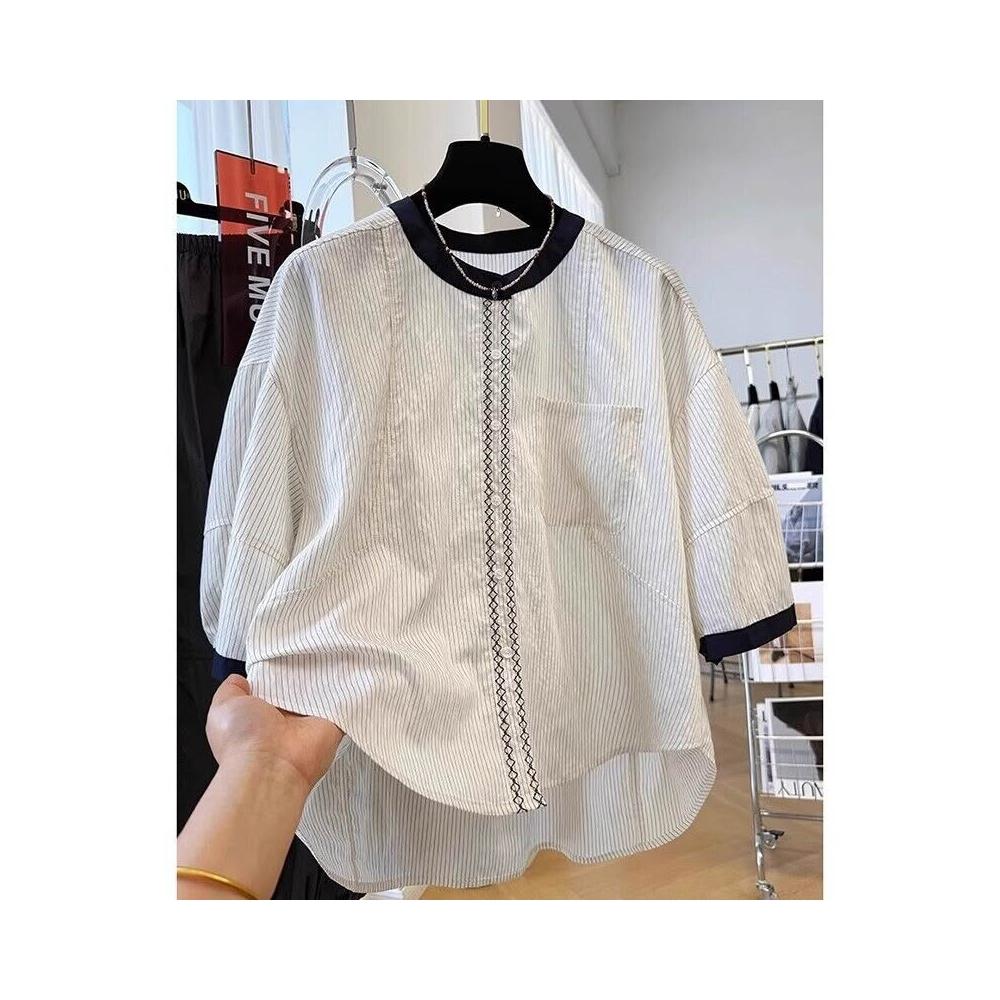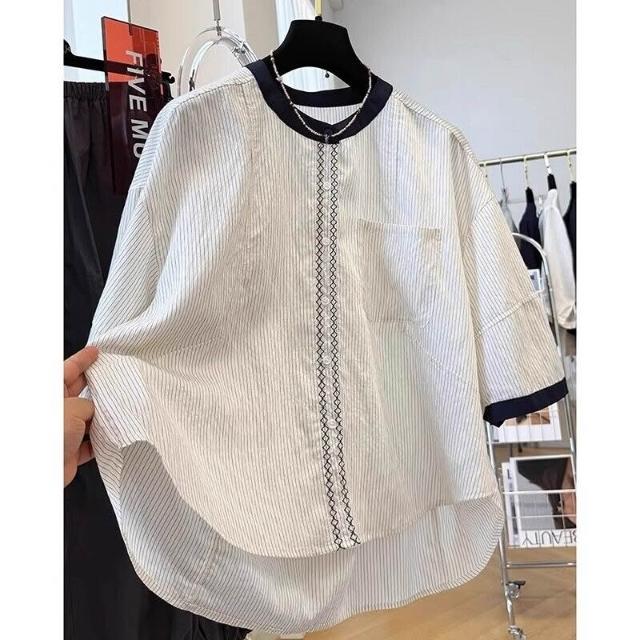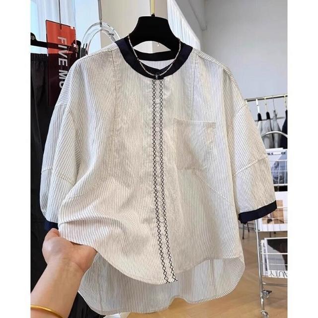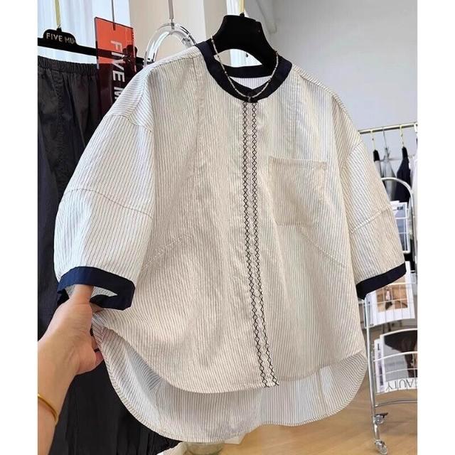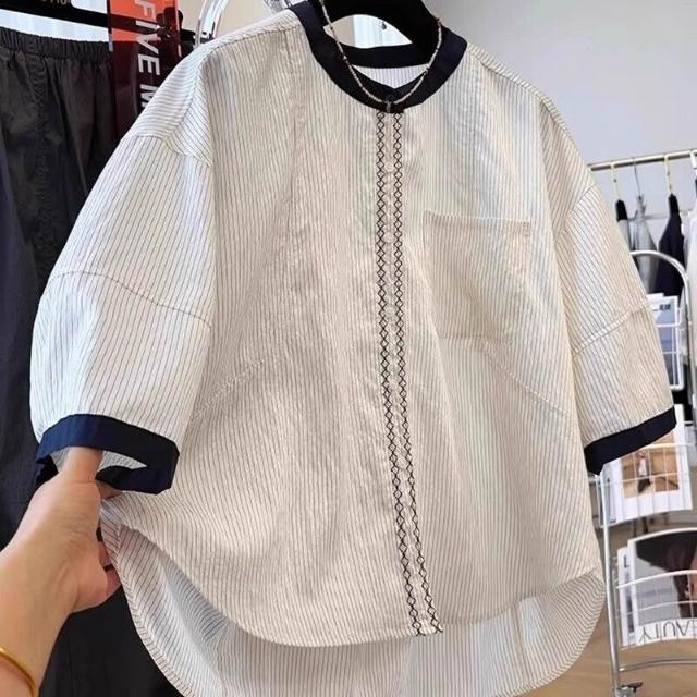歐貨2025夏季新款重工小眾設計感短袖條紋T恤刺繡氣質小衫上衣女 1af