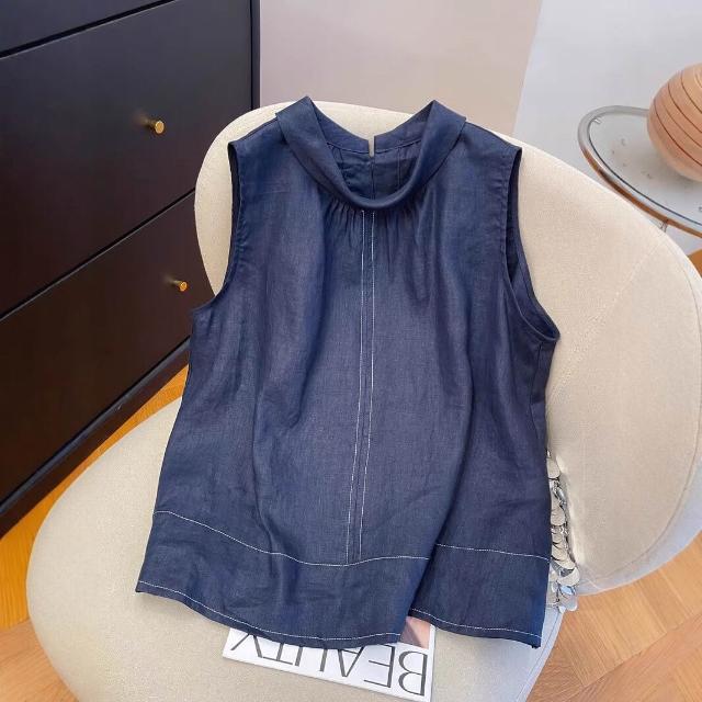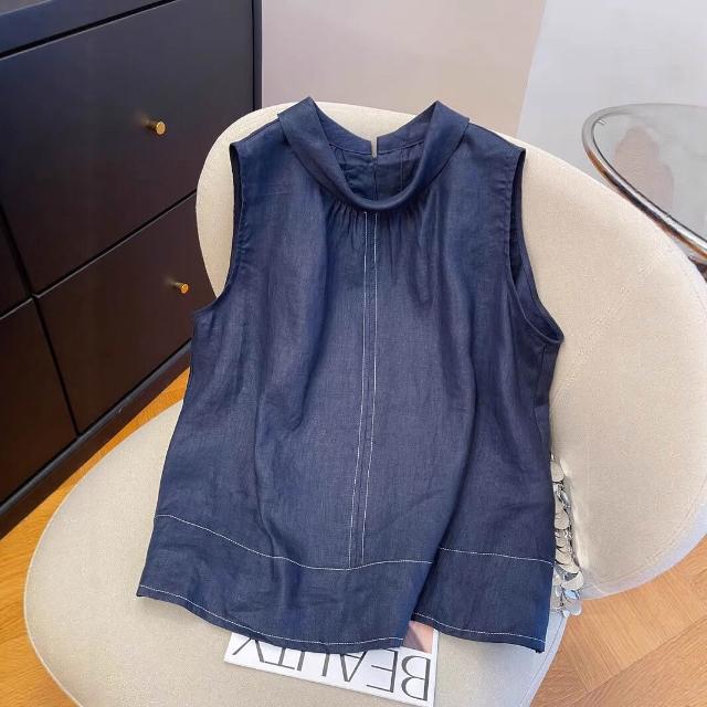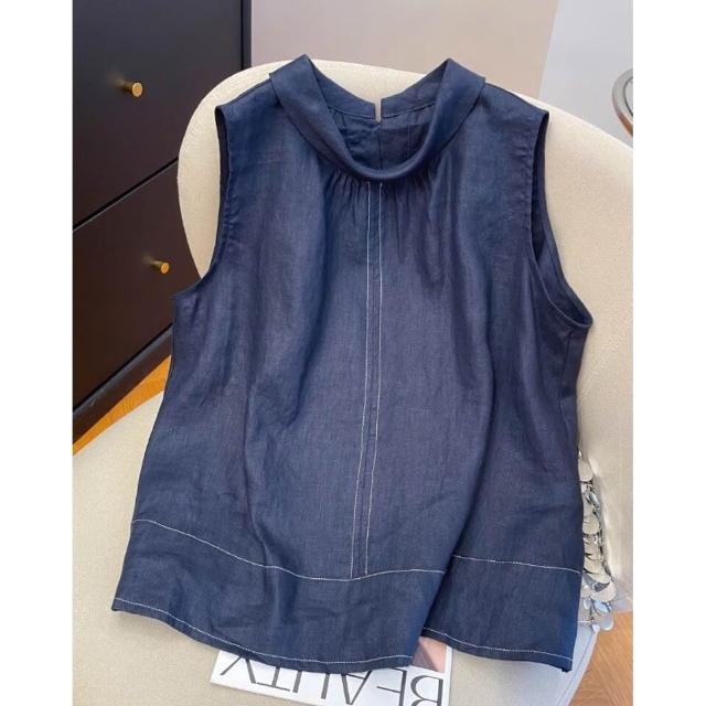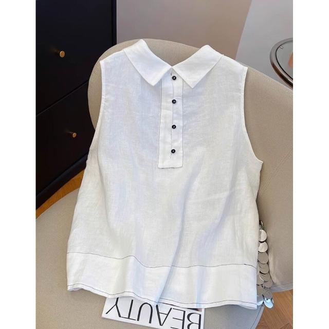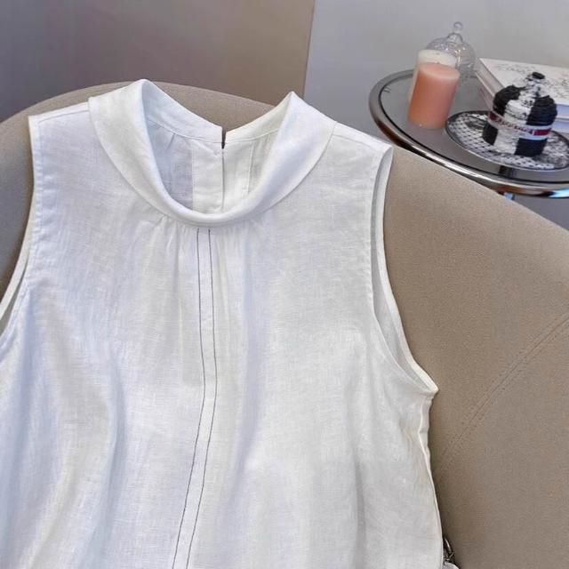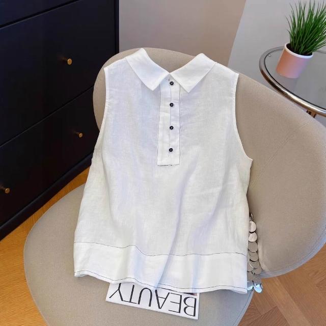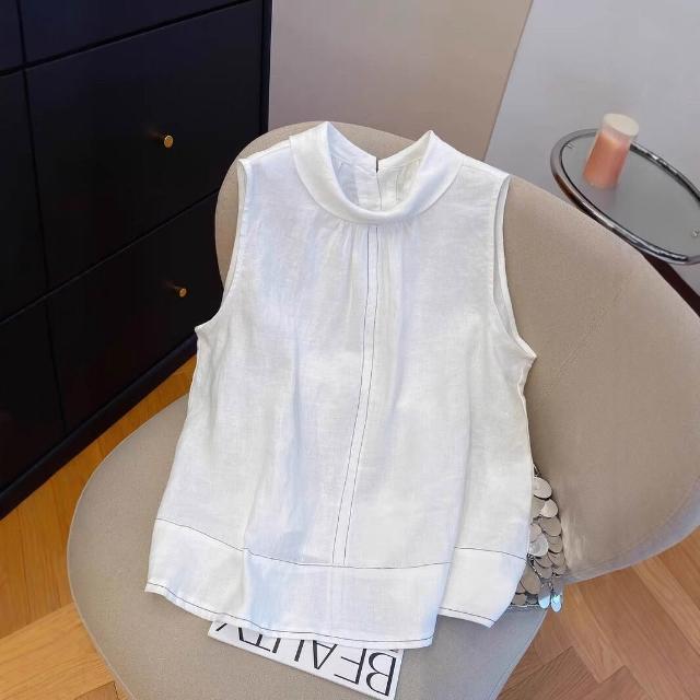 感白色亞麻無袖立領襯衫女2025夏季新款百搭小眾寬松小衫上衣 35c