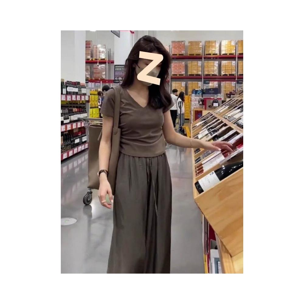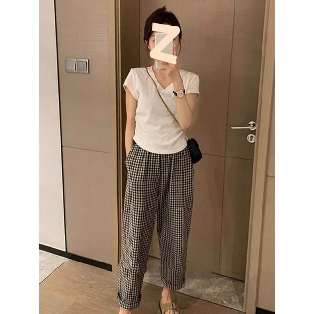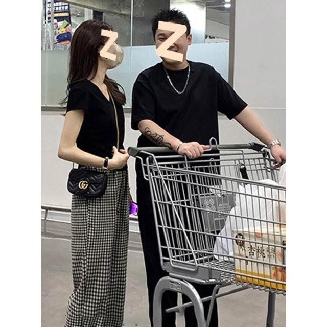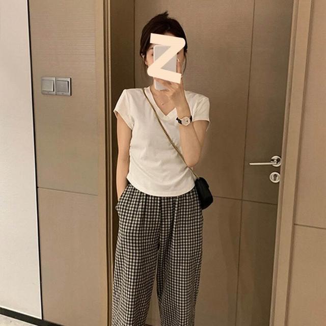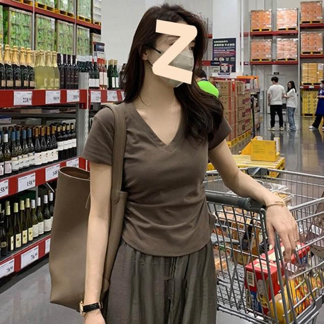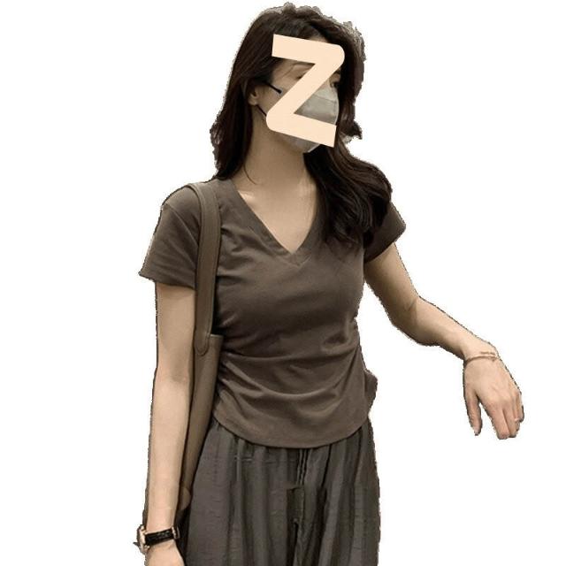 純棉v領正肩短袖t恤女夏季新款設計感小眾修身顯瘦內搭打底衫上衣 10a