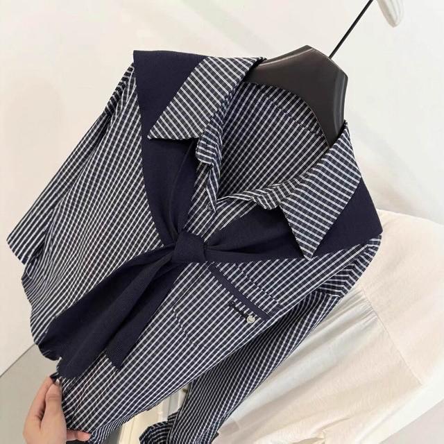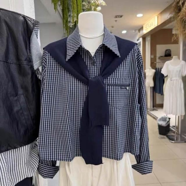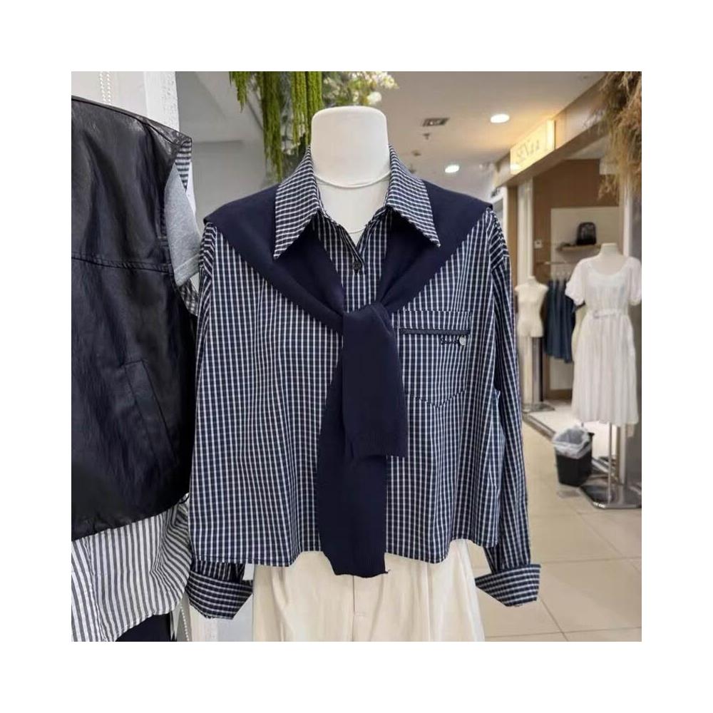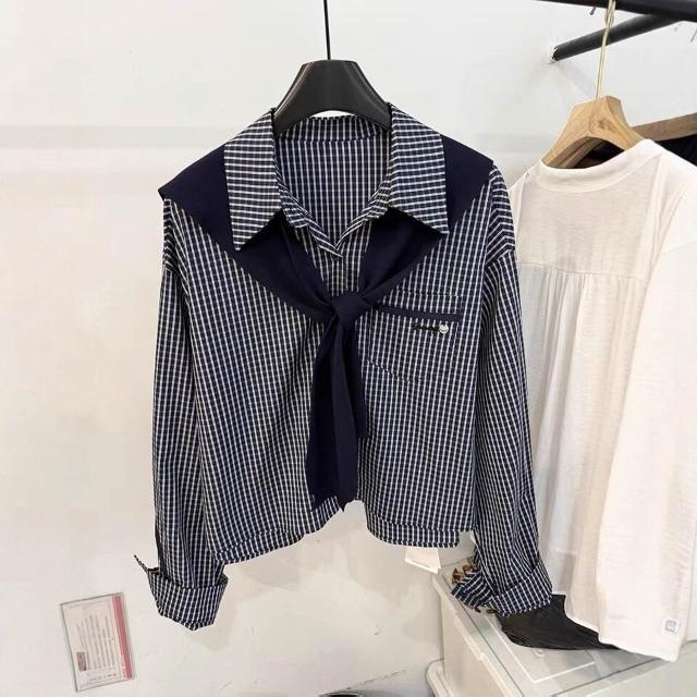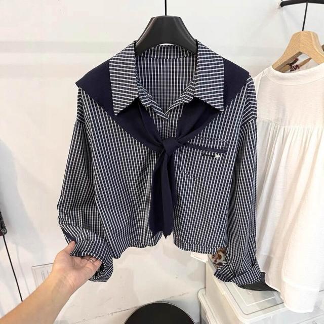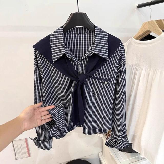 2025秋季新款時尚百搭顯瘦長袖襯衫搭配披肩女上衣潮小衫小個子 7df